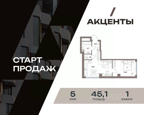 Однокомнатная квартира для молодой пары или начинающего специалиста. -В квартире предусмотрено классическое остекление -Приватная спальня с зоной гардеробной и рабочим местом -Кухня-гостиная с грамотно зонированной кухней и зоной отдыха -Вместительная зона для хранения вещей в коридоре Молодой район для жизни "Акценты" в классе бизнес-лайт — точка роста на севере Москвы. Он предлагает элегантные и строгие фасадные решения, авторский ландшафтный дизайн, а также функциональные и доступные по цене планировки. Проект находится в семи минутах пешком от станции метро "Лианозово" и одноименной МЦД-1. Добраться до МКАД можно будет за 10 минут на авто, а дорога до центра займет около 20 минут. Жилой комплекс, расположенный в районе Восточного Дегунино, предлагает развитую инфраструктуру для тех, кто ценит выбор. Он имеет удобный доступ не только к транспорту, но и к паркам, школам, садам, больницам и другим социальным объектам. В пешей доступности находятся 4 поликлиники, 5 школ, 6 детских садов, 3 бассейна и баскетбольная академия. Еще рядом есть несколько лесопарков: "Лианозово" с аттракционами и спортивными площадками для тенниса, волейбола и баскетбола, "Останкино" с конным клубом, прудом и пейнтбол-площадками. А "Северные Дубки" — это завораживающее пространство для прогулок под кронами вековых дубов, берез и лип. Кроме того, в районе не будет скучно и юным жителям. Можно оттачивать трюки в скейтпарке "Союз". Ловким и прыгучим советуем записаться в акробатический центр "Белка".