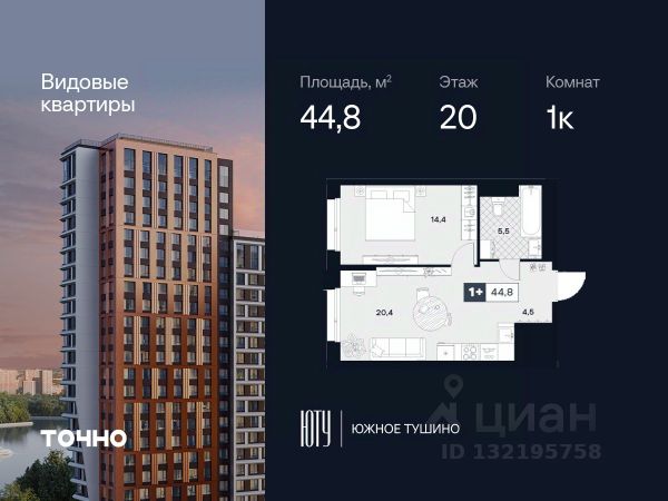 ЮТУкамерные небоскребы бизнес-класса с исключительной архитектурой, видовыми квартирами и подходом к большой водеблагоустроенной набережной канала имени Москвы. Проект ЮТУ создает идеальный баланс жизни в городе. Это приватный оазис, где в любой момент можно сменить контекст и выбрать любой из тысячи маршрутов к активному отдыху и ярким впечатлениям. Локация премиумкласса • Первая линии в прибрежной части Химкинского водохранилища • Исключительно тихий и зелёный район Южное Тушино • За 2 минуты можно спуститься к воде, за 10 минут найти зеленые парки и готовую инфраструктуру, за 30 минут доехать до Кремля Концепция проекта • Две футуристичные башни, соединенные торговой галереей от бюро ATRIUM • 60 неповторяющихся планировок: квартиры с угловым "плавным" панорамным остеклением, мастер-спальнями и гостиными до 39м² и просто очень большие квартиры площадью до 128,6 м² • Беспрецедентная коллекция видовв проекте 80 % видовых квартир Чувство эксклюзивности • Своя приватная жилая экосистема только для резидентов домов • Лаунж-терраса на крыше • Пространство скрыто от посторонних глазс трех сторон его окружают строения проекта Прогрессивные технологии • 3-уровневая система безопасности (Face ID, BLE-метки, видеонаблюдение) • Умный паркинг с распознаванием номеров Проект федерального девелопера ТОЧНОиз ТОП-3 застройщиков России. Компания в проекте реализует ответственный подход к развитию пространств для благополучной жизни человека. И что в ЮТУ особенное воплощение приобретает концепция человекоцентричности, как заметная грань девелопмента ТОЧНО. Продается 1-комнатная квартира элитные в районе Южное Тушино в Москве.
