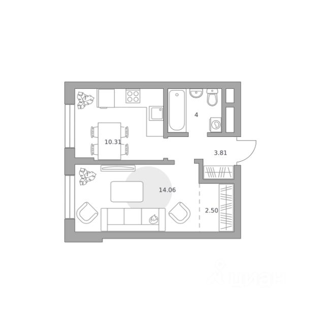 Продаётся 1-комнатная квартира 344, площадью 32,50 м², на 1 этаже в ЖК "Живописный" корпус 2.2. Стоимость — от 6744529 руб. Квартира без отделки, планировка односторонняя, окна на улицу.