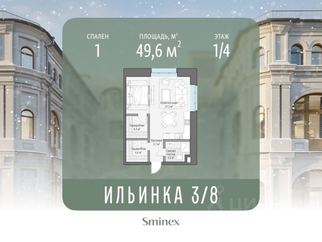 "Ильинка 3/8" - cамая близкая к Кремлю и Красной площади коллекция клубных особняков. Дом расположен на месте Тёплых торговых рядов: 160 м до Красной площади, 300 м до Кремля, 500 м до Администрации Президента. Ранее в этой исторической локации проживали представители царских сословий. По соседству находятся одна из старейших в городе Богоявленская церковь и Биржевая площадь. Расположение дарит жителям комфорт и разнообразие: пересечение Ильинки и тихого Богоявленского переулка с минимальным трафиком автомобилей, близость Никольской улицы с её насыщенной инфраструктурой - от топовых бутиков до ресторанов Michelin. "Ильинка 3/8" - это 7 эксклюзивных и роскошных особняков: 3 деликатно реконструированных исторических и 4 новых. В них представлена инфраструктура только для своих: красивый двор-сад с парадной и торжественной входной группой; лобби-бар для встреч, где можно подождать домочадцев, выпить чашечку кофе или взять её с собой; бесплатный фитнес по стандарту инфраструктуры для здорового образа жизни FIT LAB, общественная гостиная по стандарту FRIENDS LAB для знакомства и совместного времяпрепровождения соседей в доме. В клубных особняках представлены самые полные и лучшие в своём классе системы комфорта. О жителях и доме заботится Служба комфорта Smineх, которая предлагает сервис уровня 5-звёздочных отелей и сохраняет изначальный облик и концепцию дома. Девелопер проекта - Sminex, который специализируется на создании комфортной и престижной среды для жизни и работы.