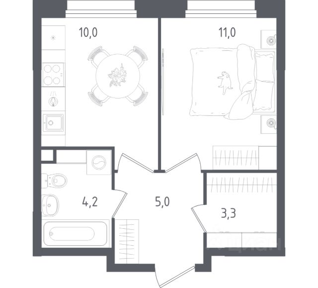 Пешая доступность от метро и московская прописка! Продается уютная студия площадью 28,4 кв.м на 1 этаже 17 этажного жилого комплекса бизнес-класса Foreville от 3S Group. Общая площадь: 28,4 кв.м., жилая: 12,4 кв.м., площадь кухни-гостиной: 5,9 кв.м., высота потолков: 4,22 м., окна выходят во двор. Квартира предлагается без отделки, что идеально подходит для воплощения собственного дизайнерского решения. Также доступна опция предчистовой отделки, стоимость которой включается в общую цену квартиры. О проекте: Пространство Комплекс располагает крупнейшим приватным двор-парком в Новой Москве площадью 1,2 Га, предлагая жителям огромное пространство для отдыха, спорта и игр на свежем воздухе. Природный ландшафт Внутренний лесопарк с более чем 183 взрослыми деревьями и 10 320 цветущими кустарниками создает уникальную природную атмосферу для каждого времени года. Игровые и спортивные зоны Обширные площадки с безопасным покрытием, специализированные зоны для детей разных возрастных групп и взрослых, включая воркаут и настольный теннис, способствуют активному и здоровому образу жизни. Экологичность и долговечность Использование натуральных материалов, таких как лиственница, и крупноформатной бетонной плитки для покрытия, подчеркивает стремление проекта к экологичности и устойчивости. Безопасность и уединение Внутренний двор без машин обеспечивает безопасность для детей и спокойствие для взрослых. Территория огорожена и находится под круглосуточным видеонаблюдением. Сохранение времени Благодаря превосходной транспортной доступности и близости к новой станции метро Корниловская, Foreville позволяет жителям экономить время для семьи и отдыха на природе, минимизируя необходимость длительных поездок. Foreville не просто жилье, а целая экосистема для комфортной и гармоничной жизни на свежем воздухе, совмещая преимущества городской инфраструктуры и непосредственную близость к природе.