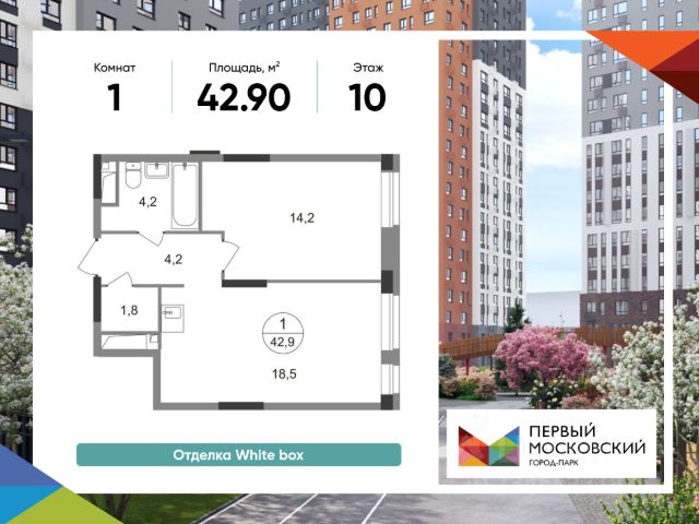 Продается однокомнатная квартира с отделкой в 9 фазе города-парка "Первый Московский". Общая площадь квартиры - 45,8 кв. м, этаж 10 из 19. Срок сдачи - 2 квартал 2027 года. Тип дома - монолитный. ТОЛЬКО ДО 28 ФЕВРАЛЯ: • Рассрочка до 18 месяцев с первоначальным взносом от 10% • Ежемесячный платеж от 50 000 руб. *подробную информацию по скидкам и акциям уточняйте в отделе продаж. Корпус состоит из 3 секций: Все квартиры с отделкой White Box с возможностью дополнительного выбора дизайнерской отделки: Classic или Smart+ Город-парк "Первый Московский" расположен всего в 7 км по Киевскому шоссе (Новая Москва). Из города-парка прямой выезд на Киевское шоссе и трассу Солнцево-Бутово-Варшавское шоссе. ТРАНСПОРТНАЯ ДОСТУПНОСТЬ: - 5 мин. на личном автомобиле или 10 мин. на автобусе 189, 147, 193 до станции метро "Филатов Луг" - 5 мин. на личном автомобиле или 12 мин. на автобусе 863 до станции метро "Саларьево" - 6 мин. на личном автомобиле или 15 мин. на автобусе 333 до станции метро "Рассказовка" РАЗВИТАЯ ИНФРАСТРУКТУРА В ОКРУЖЕНИИ: - общеобразовательная школа 2120 (корпуса д1, д7, ш1-ш5) - детский сад 2120 (корпуса д2, д9) - школа искусств - городская больница, детская поликлиника, филиал 5 - подстанция скорой помощи 58 и пожарно-спасательный центр 313 - отдел полиции, отдел ГИБДД - торговые центры "Столица" и "Новомосковский" - стадион, каток, бассейн - кафе, продуктовые магазины, аптеки, фитнес-центры, салоны красоты и пр. БЛАГОУСТРОЙСТВО: - дворы без машин - разнообразные детские площадки и развивающие комплексы - детские площадки разделены по возрастным группам - максимальная близость корпуса к парку "Филатов луг" - озеленение территории с учетом зонирования, островками для отдыха ОСОБЕННОСТИ АРХИТЕКТУРЫ: - безбарьерные входные группы - велопарковка на -1 этаже - колясочные в каждой входной группе - коммерческие помещения на 1 этаже в трех секциях - кладовые помещения расположены на жилых этажах и на -1 этаже - в каждой секции корпуса - 4 лифта: 2 пассажирских, 2 грузовых - видеонаблюдение установленное в холлах первых этажей, у подъездов и на прилегающей территории АВТОРСКИЙ ДИЗАЙН: Входные группы выполнены по авторскому дизайну, оснащены системой "тёплый пол". В каждой входной группе будет располагаться комфортабельная зона ожидания, почтовые ящики с ячейкой для спама, колясочная, акцентные пуфы и столик.