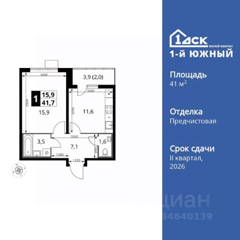 Прямая продажа от застройщика! Жилой Комплекс класса Комфорт Плюс. Продаётся 1-к квартира номер 34 общей площадью 41.6 кв.м. на 10-м этаже 24 этажного здания. Отделка Whitebox. Цена с учётом скидки. Особенности квартиры: - МЦД-5 в пешей доступности - Квартал с южным садом - Свои 3 детских сада и 2 большие школы - Линейная планировка - максимальная функциональность и удобство. - Гостевой санузел - комфорт и удобство для ваших гостей. - Раздельный санузел - больше удобства для всех членов семьи. - Просторная кухня - место для семейных ужинов и кулинарных экспериментов. - Просторная мягкая зона - комфорт и уют для отдыха всей семьи. - Возможность добавить спальное место - дополнительный комфорт для гостей. - Лоджия - уютное место для отдыха и тишины. Квартира с предчистовой отделкой (White box). Вам не придется заниматься черновыми и трудоёмкими работы, а чистовую отделку и дизайн - сделайте на свой вкус. Информация о комплексе: Одно из преимуществ проектов 1- ДСК большие застекленные лоджии. Другое преимущество честный евро-формат. Во всем проекте предусмотрена система Умный дом. В состав устанавливаемого пакета устройств входит: WiFi реле для управления группами потребителей, беспроводной кран перекрытия с эл. приводом, беспроводной сенсор протечки, Яндекс Станция Мини. Его расположение можно назвать удачным за счет транспортной доступности и близости к природным объектам. По соседству лес, а в каждом дворе плодовые деревья. Весной квартал окутывает бело-розовое облако: это цветут яблони, груши, сливы. К августу в воздух наполняется ароматом созревших плодов. Зимой среди покрытых инеем деревьев протянулась лыжня. Транспортная доступность: - Общественный транспорт: Действующая ж/д станция Булатниково (в перспективе будущая МДЦ D5) в пешей доступности, всего 10-12 минут. - Личный автотранспорт: Удобный выезд на трассу М4-Дон в сторону Москвы и области 850 м, до МКАД - 1 км Внутренняя инфраструктура: Красивые продуманные подъезды - еще одно преимущество проекта 1-й Южный. Вход в сквозные подъезды есть и с улицы, и со двора. Благодаря сплошному остеклению в них всегда светло и уютно. Подъезды расположены на уровне земли, поэтому и молодым родителям с коляской, и жильцам с ограниченными возможностями вход и выход неудобств не доставят. В помещении предусмотрено место под стойку ресепшен с выводом инженерных сетей. Если жильцы решат на общем собрании, что необходим охранник или консьерж, организовать для них рабочее место можно быстро и с минимальными затратами. В подъездах предусмотрены уборные для детей и взрослых. Колясочные в каждом подъезде позволяют поддерживать порядок и чистоту на этажах. На случай прогулки с четвероногим питомцем в непогоду в подъездах устроены лапомойки. Во дворах и на общественных территориях 1-ого Южного столько всего интересного для юных обитателей. Собственные 3 детских сада и 2 больших школы буквально под окнами Изюминка проекта - пешеходный бульвар-дендрарий, он идеален для се