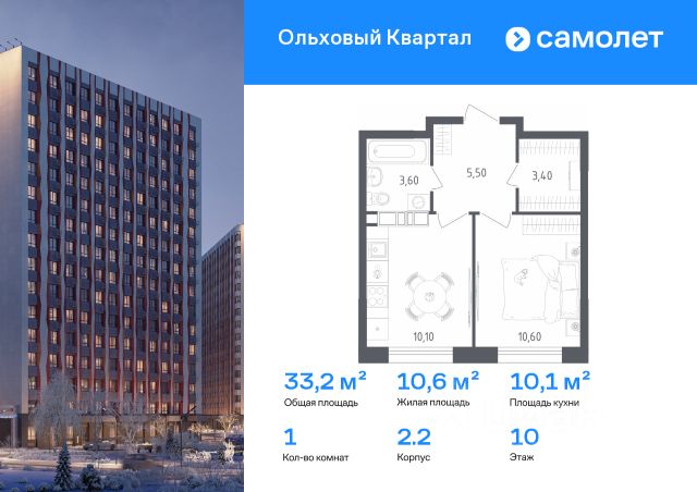 Строим кварталы для жизни с заботой о будущем. Предлагается 1-комнатная квартира комфорт-класса 33,2 кв.м в корпусе 2.2 на 10 этаже, в ЖК "Ольховый Квартал" Квартира с чистовой отделкой. Доступность дополнительных опций уточняйте у застройщика. Приобрести квартиру возможно по специальным акциям от застройщика, с текущими условиями акций можно ознакомиться в блоке "Акций". Цена динамическая и может отличаться, уточняйте актуальность у застройщика. Жилой комплекс "Ольховый Квартал" — проект комфорт-класса в Новой Москве, в пешей доступности от 3 станций метро: "Ольховая", "Прокшино" и "Коммунарка" новой Троицкой ветки. Это 3 дома высотой 16 этажей с приватными зелеными дворами. Территория квартала граничит с зеленой рощей, а через дорогу — лесопарк для ежедневных прогулок. Рядом 7 фитнес-клубов, магазины, кафе, медицинские центры, а также школы и детские сады. Пространства для тихого отдыха будут огорожены живыми изгородями. Также высадят ель, которая создаст новогоднее настроение зимой. Предусмотрены современные детские площадки для ребят всех возрастов, воркаут-зона, площадка для выгула и тренировки собак. Любители спортивных игр оценят баскетбольную площадку и столы для настольного тенниса. Светлые фасады гармонируют с окружающей природой. Облицовочный материал — фиброцементные панели. Вечером фасады украшает архитектурная подсветка.