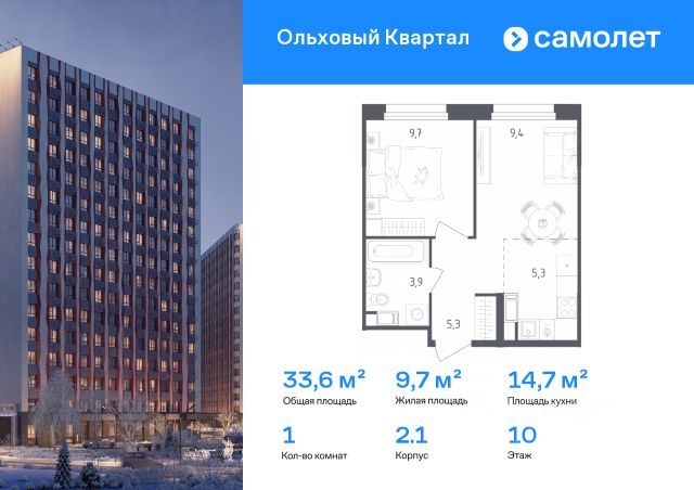 Строим кварталы для жизни с заботой о будущем. Предлагается 1-комнатная квартира комфорт-класса 33,6 кв.м в корпусе 2.1 на 10 этаже, в ЖК "Ольховый Квартал" Квартира без отделки. Доступность опции "отделка" и возможность комплектации мебелью и декором уточняйте у застройщика. Приобрести квартиру возможно по специальным акциям от застройщика, с текущими условиями акций можно ознакомиться в блоке "Акций". Цена динамическая и может отличаться, уточняйте актуальность у застройщика. Жилой комплекс "Ольховый Квартал" — проект комфорт-класса в Новой Москве, в пешей доступности от 3 станций метро: "Ольховая", "Прокшино" и "Коммунарка" новой Троицкой ветки. Это 3 дома высотой 16 этажей с приватными зелеными дворами. Территория квартала граничит с зеленой рощей, а через дорогу — лесопарк для ежедневных прогулок. Рядом 7 фитнес-клубов, магазины, кафе, медицинские центры, а также школы и детские сады. Пространства для тихого отдыха будут огорожены живыми изгородями. Также высадят ель, которая создаст новогоднее настроение зимой. Предусмотрены современные детские площадки для ребят всех возрастов, воркаут-зона, площадка для выгула и тренировки собак. Любители спортивных игр оценят баскетбольную площадку и столы для настольного тенниса. Светлые фасады гармонируют с окружающей природой. Облицовочный материал — фиброцементные панели. Вечером фасады украшает архитектурная подсветка.
