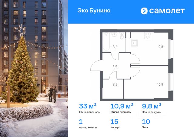Строим кварталы для жизни с заботой о будущем. Предлагается 1-комнатная квартира комфорт-класса 33 кв.м в корпусе 15 на 10 этаже, в ЖК "Эко Бунино" Квартира с чистовой отделкой. Доступность дополнительных опций уточняйте у застройщика. Приобрести квартиру возможно по специальным акциям от застройщика, с текущими условиями акций можно ознакомиться в блоке "Акций". Цена динамическая и может отличаться, уточняйте актуальность у застройщика. "Эко Бунино" — жилой комплекс в Новой Москве, полностью готовый для жизни. Уже построены школа и детские сады, открыты ледовая арена и магазины. Рядом — 2 станции метро и 3 лесопарка для прогулок. До станции метро "Новомосковская" — 20 минут пешком по экотропе. Во дворах-парках, закрытых от машин, комфортно и безопасно гулять. Здесь высажены уже взрослые деревья, которые создают прохладную тень в жаркий день. Ребенок любого возраста найдет увлекательное занятие в уже готовом плейхабе с большой горкой в виде слона и уникальным игровым оборудованием. Пока дети играют, родители могут прогуляться по бульвару или отдохнуть под навесом из растений. "Эко Бунино" — это 19 монолитных домов переменной этажности. Для облицовки используется навесной вентилируемый фасад и клинкерная плитка, которая имитирует кирпич. Переменная этажность обеспечивает хорошую инсоляцию дворов: в солнечные дни на территории особенно приятно гулять.