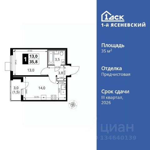 Прямая продажа от застройщика! Жилой Комплекс класса Комфорт Плюс. Продаётся 1-к квартира номер 202 общей площадью 34.3 кв.м. на 10-м этаже 16 этажного здания. Без отделки. Особенности квартиры: - Квартиры рядом с метро - м. Корниловская 9 мин пешком - 63 га лесопарка за окнами - Школа c it-кластером и бассейном. 2 детских сада - Мастер-зона с гардеробной. Просторное место для отдыха и удобного хранения вещей. - Линейная планировка - максимальная функциональность и удобство. - Гибкая планировка - создайте пространство по своему вкусу. - Можно оборудовать рабочее место - комфорт для работы и учёбы. - Гардеробная - удобство для хранения и организации вещей. - Ниша под шкаф - компактное и удобное место для вещей. Информация о комплексе: В жилом комплексе комфорт-плюс класса "1-го Ясеневского" доступны преимущества двух стилей жизни. Ведь в пешей доступности метро, школа с 25-метровым бассейном и IT-кластером и при этом целых 63 га благоустроенного Троицкого лесопарка под окнами, где так приятно дышать свежим воздухом и слушать пение птиц. Собственная закрытая территория "1-го Ясеневского" представляет собой уютный оазис. Здесь и зеленый освещенный бульвар для прогулок, система велодорожек, маленькая городская площадь, кафе, пекарни и кофе поинты. А еще дворы без машин и многоэтажная парковка. Изюминка территории - фруктовые деревья во дворах и городские сады. "1-й Ясеневский" - всего в 1 км от МКАД, на территории новой Москвы. Жилой комплекс, где есть все необходимое для современного человека. Транспортная доступность: До метро "Корниловская" - 12 минут пешком До метро "Тютчевская" - 25 минут пешком До метро "Теплый стан" - 10 минут на транспорте До метро "Ольховая" - 30 минут на общественном транспорте Личный автотранспорт: Выезд на Калужское шоссе - 500 м МКАД - 1 км Внутренняя инфраструктура: ЖК "1-й Ясеневский" можно назвать идеальным местом для жизни семьи с детьми. Здесь буквально за домом находится Троицкий лесопарк - излюбленное место прогулок молодых родителей. А во внутренних дворах под детские площадки выделены специальные зоны. Они оборудованы всем, что нужно для счастливого детства: современными и максимально безопасными качелями, песочницами и лазалками. Оборудование и игровые сценарии на детских площадках спроектированы вместе с командой детских психологов для правильного развития ребенка и для повышения их интереса. Также рядом с домом два детских садика, один из которых уже построен и школа на 1100 мест. Школу по праву можно назвать образцовым учебным заведением. В ней закладываются основы успешного будущего. Здесь есть класс робототехники, IT-кластер, 25-метровый бассейн и прекрасно оборудованные спортзалы.