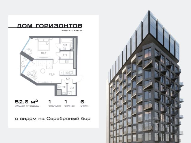 Клубный дом в Крылатском районе уникальный проект для данной локации • Скидки месяца на избранный пул лотов • Рассрочка на выгодных условиях ЛОКАЦИЯ: • Самый экологичный район столицы — более 70% территории Крылатского занимают природные зоны и акватория. • Крылатские Холмы в пешей доступности • 10 минут на автомобиле от Москва-Сити • Удобные выезды на основные магистрали: ТТК, Садовое кольцо ИНФРАСТРУКТУРА РАЙОНА: • Богатая спортивная инфраструктура: велотрек, гребной канал, ледовый дворец, горнолыжная база, теннисные корты и т.д. • Престижные школы и детские сады ДОМ ГОРИЗОНТОВ • 135 квартир, 4 квартиры с террасами, 3 пентхауса • - 2 этажа паркинга с зарядками для электрокаров • Приватная закрытая территория с богатой инфраструктурой для резидентов Квартира видовая с балконом и панорамным остеклением: - Уютная функциональная планировка - Кол-во комнат: 1 - Общая площадь - 52.58 кв.м. - кв.м - 9 этаж 27 этажного дома Вечные виды на зеленые просторы Серебряного Бора и сверкающую ленту Москвы-реки с аркой Живописного моста. ИНФРАСТРУКТУРА УДОБНОЙ ЖИЗНИ: • Круглосуточное видеонаблюдение и контроль доступа • Консьерж-сервис 24/7 • Зарядные станции для электромобилей на подземном паркинге • Индивидуальные келлеры для хранения спортивного инвентаря • Детский физкультурный комплекс с двумя бассейнами Дом Горизонтов — клубное пространство в одном из самых зелёных районов Москвы, где каждая деталь дарит вдохновение и ощущение свободы. Оперативный показ квартиры! Бронирование по телефону