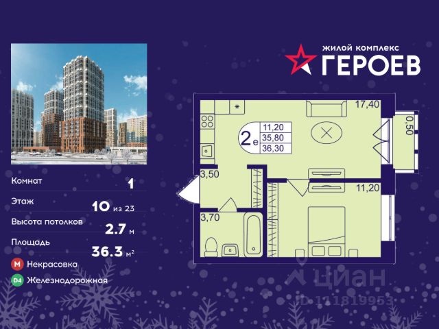 Прямая продажа от застройщика! Жилой Комплекс класса Комфорт Плюс. Продаётся 1-к квартира номер 502 общей площадью 41.9 кв.м. на 10-м этаже 22 этажного здания. Отделка Whitebox. Цена с учётом скидки. Особенности квартиры: - Просторная спальня, в которой можно разместить большую кровать. - Линейная планировка - максимальная функциональность и удобство. - Раздельный санузел - больше удобства для всех членов семьи. - Линейная кухня - функциональность и практичность в одном решении. - Ниша под шкаф - компактное и удобное место для вещей. - Лоджия - уютное место для отдыха и тишины. Квартира с предчистовой отделкой (White box). Вам не придется заниматься черновыми и трудоёмкими работы, а чистовую отделку и дизайн - сделайте на свой вкус. Информация о комплексе: Ощущение уютного дома должно начинаться с подъезда. Мы постарались предусмотреть все нюансы, чтобы наши лифты отвечали самым строгим современным требованиям. Двор без машин, закрытое, безопасное, охраняемое место с удобным доступом для вашего авто, более чистый воздух и гарантированное место для стоянки - и это далеко не преимущества наличия подземного паркинга. А наличие кладовых позволит вам поддерживать идеальный порядок и уют в вашей квартире! "1-й Лермонтовский" расположился недалеко от уже сложившегося зеленого окружения - Люберецкого парка и Жулебинского лесопарка, переходящего в природно - исторический парк "Кузьминки". Если вы предпочитаете активный семейный отдых на свежем воздухе - в округе мест для него предостаточно. С востока он граничит со столичным районом Некрасовка. С северной стороны - с развитым современным микрорайоном "Красная Горка". Удачное расположение дарит жильцам возможность передвижения как на своем автомобиле, так и на общественном транспорте. Транспортная доступность: В шаговой доступности ж/д станция "Люберцы-1". 5 минут на автомобиле до станций метро "Некрасовка", "Котельники", "Лермонтовский проспект" Внутренняя инфраструктура: Свободно перемещайтесь по внутренней территории в безбарьерной среде! На территории комплекса созданы все условия как для активного образа жизни, так и для спокойного времяпрепровождения: - игровые площадки для детей разного возраста. - площадки воркаута, спортивные комплексы с зонами для детского и взрослого спорта. - зоны отдыха с пешеходными дорожками и аллеями. Также, к вашим услугам: 4 общеобразовательные школы, 7 детских садов, спортивные и танцевальные, школы, поликлиники, множество магазинов и супер-маркетов, включая Ашан и несколько крупных ТЦ в шаговой доступности.