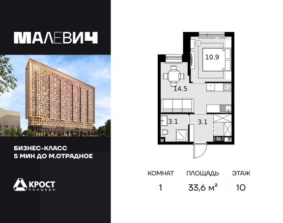 • ✓ В базе Циан 10 1-комнатных квартир на 10 этаже рядом с метро Отрадное