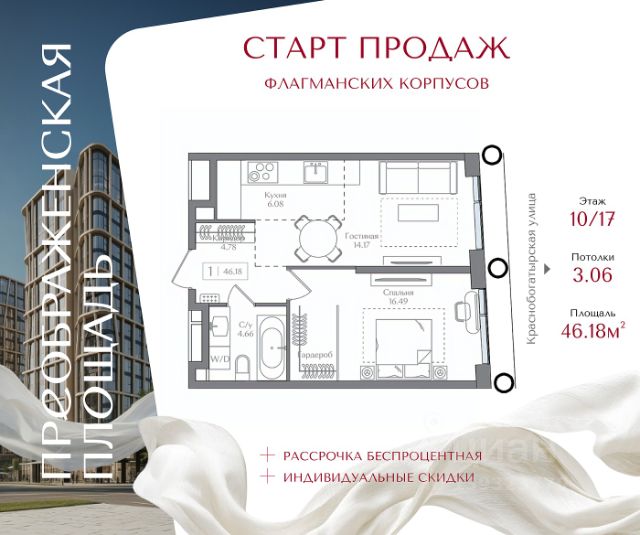 Компактная 2Е-квартира с большой гардеробной и отдельной спальней — Большая гардеробная сразу решает вопрос хранения и освобождает жилое пространство — Линейная кухня собирает аккуратную общую зону без визуального шума — Отдельная спальня и полноценная ванная делают формат удобным не только на старте, но и на вырост — Увеличенное окно в кухне-гостиной добавляет свету глубины и объема Небольшая по метражу, но очень взрослая по ощущению квартира. О доме Клубный дом премиум-класса на 82 квартиры — формат приватного сообщества, где знают своих. — Потолки 3,15-3,7 м и квартиры с продуманными планировками — Отделка на выбор или свобода для собственного дизайна — Архитектура GAFA в духе современной европейской урбанистики Двор и инфраструктура Многоуровневый приватный двор-сад, который радует в любое время года. Более двадцати видов деревьев, кустарников и многолетников — от зеленокорого клёна и пурпурной ивы до гортензии "Анабель". Галерея первого этажа объединяет пространство в единый архитектурный ансамбль. Сервис уровня 5 Консьерж 24/7, валет-паркинг, сервис чистоты и полное инженерное сопровождение. Отдельный вход для курьеров. Инженерия и комфорт Индивидуальная вентиляция, бесшумные скоростные лифты, современные инженерные системы. Безопасность Закрытая территория, видеонаблюдение, патруль, группа быстрого реагирования и доступ по Face ID и BLE-меткам, распознавание номеров на въезде.