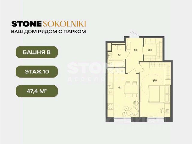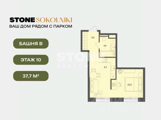 В семейном жилом квартале, расположенном в окружении более 500 га леса и объектов исторического наследия, продается 1-комнатная квартира площадью 36.50 кв. м без отделки. Квартира расположена на 10 этаже 12-этажного корпуса 2.1 жилого квартала бизнес-класса КОД Сокольники от девелопера Новая Эра. Отличная транспортная доступность - 3 мин. пешком до станции МЦД-3 "Митьково"; - 10 мин. пешком до станции метро "Сокольники"; - Удобный выезд на Русаковскую улицу; - 5 мин. на авто до ТТК; - 15 мин. на авто до Садового кольца. Продуманный архитектурный проект - Выразительная архитектура, созданная бюро "Остоженка"; - 70% квартир в квартале - видовые, что позволяет ежедневно наслаждаться панорамами на парк Сокольники, Останкинскую телебашню, исторический центр и Алексеевский монастырь; - Высокие потолки от 3 метров в типовых планировках; - Дизайнерские лобби от модной студии 211.Studio; - Двухуровневый паркинг с подогреваемой рампой и пологим заездом, подходящим даже для спорткаров; - Дополнительный комфорт на территории семейного квартала создадут современные инженерные системы. Расположение Семейный жилой квартал КОД Сокольники - это дома бизнес-класса в престижном районе Сокольники. Район отличает хорошая транспортная доступность: несколько минут пешком до станции метро "Сокольники" и платформы МЦД-3 ("Митьково"), регулярные трамвайные и автобусные маршруты, удобный выезд на Русаковскую улицу и Третье транспортное кольцо. До Садового кольца можно доехать за 15 минут. Для пешеходов и велосипедистов в парковой зоне будут оборудованы широкие тротуары и велодорожки, обеспечивая комфортные условия для активного образа жизни. Внутренняя инфраструктура Резидентам будет доступна развитая клубная инфраструктура: собственный фитнес-рум, коворкинг с панорамным видом на парк, игровая комната для детей, пространства для мастер-классов и просторная гостиная, которую можно использовать для отдыха, просмотра кино или проведения мероприятий. На первых этажах жилых домов разместятся объекты стрит-ритейла: кафе, рестораны, магазины и различные сервисы - от аптек и салонов красоты до ателье и барбершопов. Рядом с жилыми корпусами появится деловой квартал с офисами и торговыми площадями на 75 тысяч кв. м, что делает проект привлекательным для тех, кто ценит возможность жить и работать поблизости. Благоустройство Центральным элементом квартала станет благоустроенный двор-парк площадью 3 га с собственным прудом и зелеными зонами для прогулок и отдыха. В границах двора предусмотрены современные игровые и спортивные площадки: мультифункциональная зона воркаута, площадки для волейбола и стритбола, секция сквоша, столы для пинг-понга, площадки для пилатеса и йоги, скалодром, а также беговые и веломаршруты. В состав проекта войдет образовательный центр, включающий детский сад для 350 малышей, а также школу на 650 учеников.