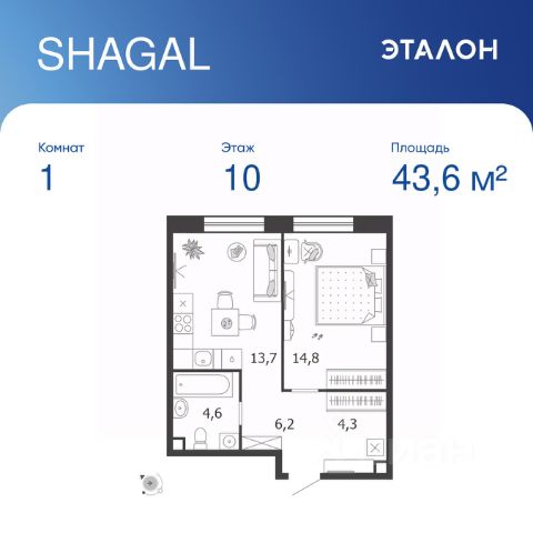 Продается 1-к квартира без отделки в ЖК "Shagal". Общая площадь квартиры — 43.6 кв. м, этаж 10 из 18. Тип дома — монолитный. Цена указана при 100% оплате. Квартал Shagal — крупнейший проект комплексного освоения в Москве. В проекте реализуется продуманная система маршрутов. Еда, покупки, услуги, прогулки, спорт, образование, работа и развлечения — все будет находиться рядом с домом: принцип 15-минутной доступности инфраструктуры и сервисов. Разнообразие и продуманность пешеходных маршрутов, а также короткие расстояния между основными точками притяжения мотивируют резидентов Shagal с удовольствием передвигаться по району пешком, не выпадая из ритма большого города. Продуманная транспортная сеть района и безопасный скоростной режим создают комфортные условия для перемещений любым способом: на автобусе, машине, самокате или велосипеде. Не нужно выезжать из района, чтобы получить комфорт и сервис самого высокого современного стандарта: все необходимые услуги, инфраструктура, парки и вторая по протяженности набережная в городе — на расстоянии 15-минутной прогулки от вашего дома. Квартал Shagal станет первым в Москве жилым районом, где будут комплексно реализованы инновационные подходы в проектировании и строительстве зданий. Архитектурная композиция состоит из домов отличающегося типа. Высотные башни-доминанты с видовыми квартирами, дома пониже, растворяющиеся в спокойствии внутренних двориков, малоэтажные камерные таунхаусы и разноэтажные дома с лоджиями на первой береговой линии соединяются в одно эстетичное современное произведение. В результате создаётся насыщенное идентичное пространство, подчёркнутое плавностью природных форм, наполненное светом, воздухом и свободой.