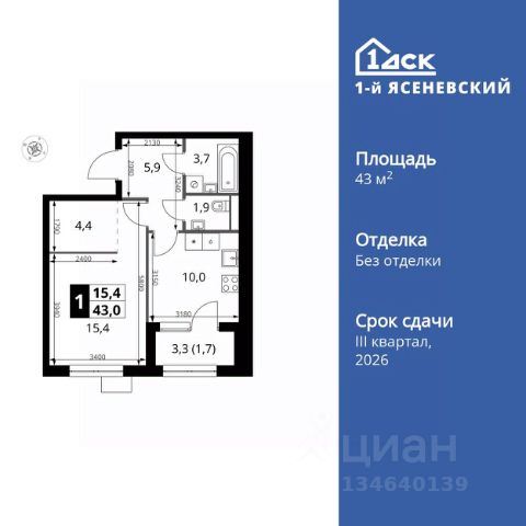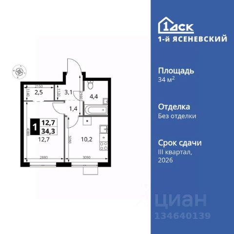 Прямая продажа от застройщика! Жилой Комплекс класса Комфорт Плюс. Продаётся 1-к квартира номер 202 общей площадью 34.3 кв.м. на 10-м этаже 16 этажного здания. Без отделки. Особенности квартиры: - Квартиры рядом с метро - м. Корниловская 9 мин пешком - 63 га лесопарка за окнами - Школа c it-кластером и бассейном. 2 детских сада - Мастер-зона с гардеробной. Просторное место для отдыха и удобного хранения вещей. - Линейная планировка - максимальная функциональность и удобство. - Гибкая планировка - создайте пространство по своему вкусу. - Можно оборудовать рабочее место - комфорт для работы и учёбы. - Гардеробная - удобство для хранения и организации вещей. - Ниша под шкаф - компактное и удобное место для вещей. Информация о комплексе: В жилом комплексе комфорт-плюс класса "1-го Ясеневского" доступны преимущества двух стилей жизни. Ведь в пешей доступности метро, школа с 25-метровым бассейном и IT-кластером и при этом целых 63 га благоустроенного Троицкого лесопарка под окнами, где так приятно дышать свежим воздухом и слушать пение птиц. Собственная закрытая территория "1-го Ясеневского" представляет собой уютный оазис. Здесь и зеленый освещенный бульвар для прогулок, система велодорожек, маленькая городская площадь, кафе, пекарни и кофе поинты. А еще дворы без машин и многоэтажная парковка. Изюминка территории - фруктовые деревья во дворах и городские сады. "1-й Ясеневский" - всего в 1 км от МКАД, на территории новой Москвы. Жилой комплекс, где есть все необходимое для современного человека. Транспортная доступность: До метро "Корниловская" - 12 минут пешком До метро "Тютчевская" - 25 минут пешком До метро "Теплый стан" - 10 минут на транспорте До метро "Ольховая" - 30 минут на общественном транспорте Личный автотранспорт: Выезд на Калужское шоссе - 500 м МКАД - 1 км Внутренняя инфраструктура: ЖК "1-й Ясеневский" можно назвать идеальным местом для жизни семьи с детьми. Здесь буквально за домом находится Троицкий лесопарк - излюбленное место прогулок молодых родителей. А во внутренних дворах под детские площадки выделены специальные зоны. Они оборудованы всем, что нужно для счастливого детства: современными и максимально безопасными качелями, песочницами и лазалками. Оборудование и игровые сценарии на детских площадках спроектированы вместе с командой детских психологов для правильного развития ребенка и для повышения их интереса. Также рядом с домом два детских садика, один из которых уже построен и школа на 1100 мест. Школу по праву можно назвать образцовым учебным заведением. В ней закладываются основы успешного будущего. Здесь есть класс робототехники, IT-кластер, 25-метровый бассейн и прекрасно оборудованные спортзалы.