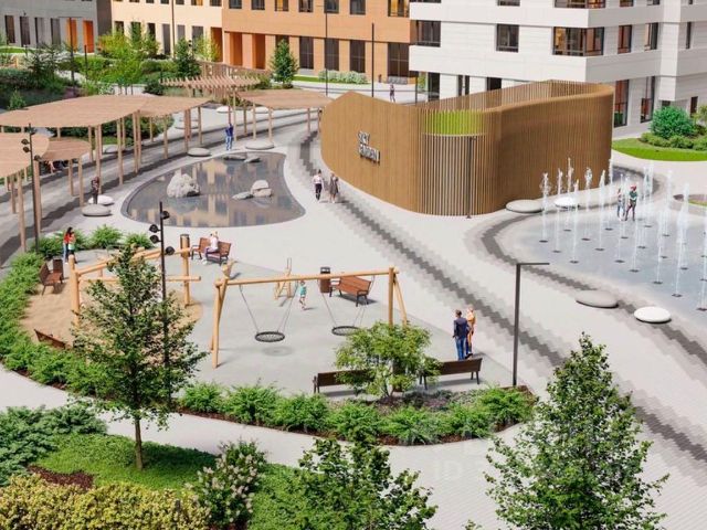 К вашим услугам современные игровые площадки: тут ваши дети с удовольствием смогут лазить по бревнам, штурмовать горки и стараться не промокнуть, бегая под струями фонтана. В Sky Garden полно возможностей как для совсем маленьких, так и для взрослых. Предусмотрены активности: мастер классы по йоге на английском газоне, воркаут- площадка, велопарковки. Также в вашем распоряжении на территории комплекса будут: поликлиника, аптека, супермаркет, зона для отдыха, сухой фонтан и площадка для подростков.