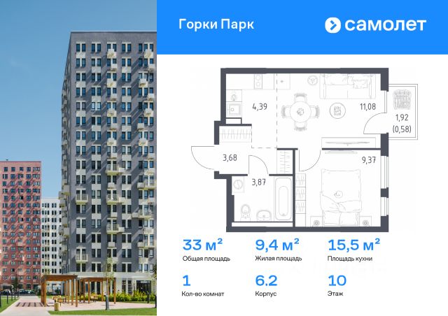 Предлагается 1-комнатная квартира комфорт-класса 32,9 кв.м в корпусе 18.2 на 10 этаже, в ЖК "Новое Видное" Квартира без отделки. Доступность опции "отделка" и возможность комплектации мебелью и декором уточняйте у застройщика. Приобрести квартиру возможно по специальным акциям от застройщика, с текущими условиями акций можно ознакомиться в блоке "Акций". Цена динамическая и может отличаться, уточняйте актуальность у застройщика. Жилой комплекс "Новое Видное" — масштабный проект из 30 урбан-блоков, который находится рядом с Видновским лесопарком и в 8 км от МКАДа. В отделке фасадов — декоративный кирпич в белом, сером, бежевом и терракотовом оттенках. Такое сочетание оттенков словно нежная игра света на песчаной глади озера — тонкие линии и мягкие переливы создают волшебный узор, отражающий красоту природы. Жить здесь легко и комфортно: рядом с домом будет все важное и необходимое — от магазинов и кафе до плейхабов и набережной. В "Новом Видном" вы сможете слушать джазовые мотивы города и наслаждаться освежающей близостью леса. "Новое Видное" — это: 1. До МКАДа — 8 км 2. 20 минут ходьбы или 5 минут на авто до ж/д станции Калинина 3. 25 минут на авто до аэропорта Домодедово 4. В будущем — прямой выезд на Каширское шоссе 5. Видновский парк и Пуговичинский пруд рядом с домом 6. Музей-заповедник "Горки Ленинские" в нескольких минутах на авто 7. 12 минут на авто до конных клубов "Задор", "Юланта" и "Казачий Дозор" 8. 4 школы, 7 детских садов, поликлиника, станция скорой помощи 9. Приватные дворы без машин 10. Покет-парки для спокойного отдыха 11. Спортивные и игровые площадки 12. Входы в корпуса без ступеней и высоких порогов 13. Помещения для колясок в лобби 14. Панорамное остекление балконов 15. Велодорожки по всей территории квартала
