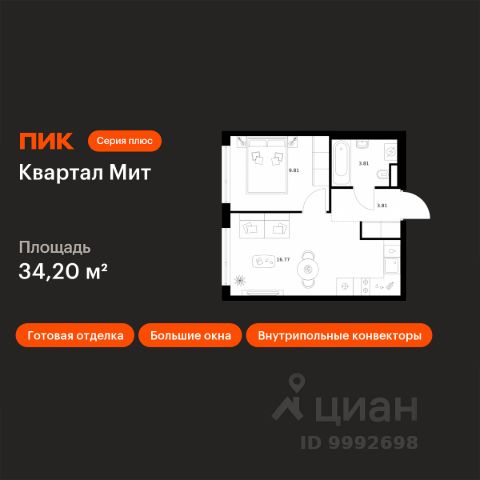 Продаётся 1-комн. квартира площадью 38,06 кв.м на 10 этаже 19 этажного дома (Корпус 3.6, Секция 10) проекта ПИК Квартал Мит. Светлый просторный подъезд на уровне земли, функциональная планировка, большие окна, c отделкой. "Квартал Мит" строится в экологически чистом районе Митино, где по соседству расположен большой лесопарк, а с двух сторон протекают реки Сходня и Журавка. Для семей с детьми здесь появится школа и два детских сада. В 20 минутах пешком находится станция метро "Пятницкое шоссе", а за 10 минут на автомобиле можно доехать до МКАД. Архитектура от архитектурного бюро "Слава+" Концепция квартала сочетает эстетику и функциональность. Башня-доминанта цвета красной охры и разновысотные корпуса терракотового, белого и графитового оттенков формируют узнаваемый силуэт современного городского пространства. Просторные террасы, разнообразные балконы и окна в пол придают облику динамичность и дарят квартирам уютные места для отдыха. Первые этажи с панорамными окнами создают сцену для яркой городской жизни. Здесь появятся пространства для прогулок, летние террасы, рестораны и коммерческие помещения. Комфорт "Серии плюс". При входе в дом жителей встретят светлые просторные лобби с высокими потолками — попасть сюда можно как со стороны улицы, так и со двора. В лобби будет зона ожидания, велосипедная и колясочная. Быстро и с комфортом подняться на нужный этаж помогут бесшумные скоростные лифты. На подземном этаже появится паркинг и индивидуальные кладовые, где удобно хранить сезонные вещи. Артикул 1035653 (Застройщик АО СЗ "ПФК")