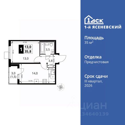 Строим кварталы для жизни с заботой о будущем. Предлагаются 1-комнатные апартаменты бизнес-класса площадью 35,13 кв.м в корпусе 2.3 на 10-м этаже, в жилом комплексе "Тропарево Парк". Проект строится полностью с отделкой, которая включает ламинат, обои под покраску, натяжной потолок. Установлены двойные стеклопакеты увеличенного формата до 180 см, которые не только сохраняют тепло в доме, но и пропускают много солнца, делая комнаты светлее. Стены в ванной и санузлах отделаны керамогранитом под мрамор, установлена вся нужная сантехника. Для стиральной машины уже предусмотрено место. Прописка не предусмотрена в рамках юридического статуса - апартаменты. Приобрести апартаменты возможно по специальным акциям от застройщика, с текущими условиями акций можно ознакомиться в блоке "Акций". Цена динамическая и может отличаться, уточняйте актуальность у застройщика. "Тропарево Парк" — комплекс апартаментов бизнес-класса рядом с Ленинским проспектом, в Новой Москве. Находится всего в 10 минутах пешком от станции метро "Румянцево". Включает 7 жилых корпусов высотой от 16 до 23 этажей, приватные дворы-сады, обширную зеленую территорию с общественными пространствами. Из части апартаментов открываются виды на Тропаревский лесопарк, расположенный рядом.