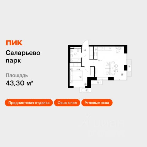Продаётся 1-комн. квартира площадью 43,3 кв.м на 10 этаже 16 этажного дома (Корпус 57.1, Секция 1) проекта ПИК Саларьево парк. Светлый просторный подъезд на уровне земли, функциональная планировка, большие окна, предчистовая отделка. Жилой район "Саларьево парк" расположен в Новой Москве, в четырёх километрах от МКАД по Киевскому шоссе. Две станции метро: "Саларьево" и "Филатов луг", — находятся в пешей доступности от проекта. Дойти до них можно за 510 минут. В квартале уже создана качественная среда, где есть абсолютно всё для полноценной жизни, работы и отдыха. Благодаря удобному расположению проекта всё важное будет рядом: детские сады, школы, кафе и рестораны, шопинг в торговых центрах, фитнес и даже аэропорт. Все корпуса в квартале гармонично сочетаются, образуя единую городскую среду. Между собой их объединяет невысокая этажность и натуральная цветовая гамма. Здесь приятно гулять и проводить время на улице всей семьёй. В "Саларьево парке" создана уникальная образовательная среда, включающая в себя шесть школ, рассчитанных на 6 250 учеников. Две из них уже открыты, их посещает 2 300 детей. Также на территории "Саларьево парка" находится 12 детских садов, один из которых с бассейном. Сейчас уже открыты 7 садов. В "Саларьево парке" открыта уникальная игровая площадка — PlayHub "Оригами". Здесь есть ручей, горка-труба и рельефные холмы. Взрослые смогут отдохнуть в уютном кафе, пока дети играют. Также на территории проекта есть SportHub — большая спортивная зона, разделённая по интересам и возрастам. Здесь можно заниматься разными видами спорта: футболом, баскетболом, волейболом и стритболом. Зимой центральную часть площадки превращают в каток. Во дворах-парках жилого квартала есть места для отдыха, детские и спортивные площадки. На первых этажах домов расположены магазины, кафе и полезные сервисы. Также вблизи проекта есть несколько масштабных торговых центров. До ТЦ "Саларис" пять минут пешком, до "Рио", Metro Cash & Carry и "Леруа Мерлен" — пять минут на автомобиле. Артикул 1019113 (Застройщик ООО "Специализированный Застройщик "Тирон")