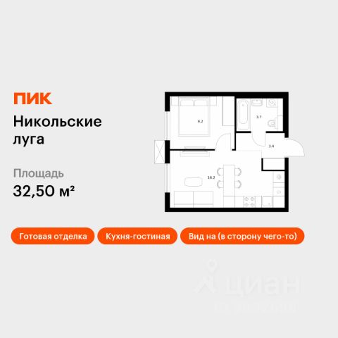 Продаётся 1-комн. квартира площадью 32,5 кв.м на 10 этаже 11 этажного дома (Корпус 4, Секция 4) проекта ПИК Никольские луга. Светлый просторный подъезд на уровне земли, функциональная планировка, большие окна, c отделкой. Жилой квартал "Никольские луга" расположен на юго-западе Москвы, в 17 минутах пешком от МЦД "Щербинка". Дорога на автомобиле до МКАД займёт 20 минут, а до Варшавского шоссе — всего 5 минут. Неподалёку находятся два больших парка — Бутовский лесопарк и парк "Южное Бутово". "Никольские луга" — большой проект, который отражает концепцию "город в городе". Он отличается современной архитектурой, а корпуса будут облицованы плиткой тёплых натуральных оттенков. Благодаря витражному остеклению на входе, в просторные лобби будет попадать ещё больше света. В проекте предусмотрены квартиры с балконами, в том числе угловыми с панорамным остеклением. Рядом с домами будет всё необходимое для комфортной жизни. Специально для проекта мы построим три детских сада, две школы и спортивный комплекс. Пруд на территории квартала будет благоустроен, а рядом с ним появятся места для отдыха у воды. На первых этажах домов откроются магазины и необходимые сервисы, в каждом дворе разместятся детские и спортивные площадки, а через весь район протянется несколько пешеходных бульваров. Артикул 963510 (Застройщик ООО "СПЕЦИАЛИЗИРОВАННЫЙ ЗАСТРОЙЩИК "ТЕРИБЕРСКИЙ БЕРЕГ")