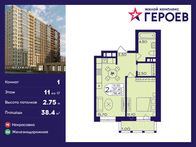 Продаётся 1-комнатная квартира 40.50 кв. м. в жилом комплексе "Героев" в Балашихе, Железнодорожный. Квартира расположена на 11 этаже 410 корпуса. В наличии квартиры с отделкой. Всего 40 минут до центра Москвы. При покупке квартиры в сданном доме ключи выдаются сразу! Жилой квартал "Героев" - это уютный проект для семей с детьми. В квартале созданы все условия для досуга всех возрастов: игровые и спортивные площадки, места для отдыха и прогулочные зоны. За 15 минут можно дойти от дома до Ольгинского лесопарка, популярного места для отдыха на свежем воздухе. На территории жилого комплекса уже открыт детский сад на 250 мест и началось строительство еще одного - для 220 малышей, а также школы для 1320 учеников. Рядом работают магазины, кафе, супермаркеты, пункты выдачи. Преимущества: • В уютных светлых квартирах с просторными кухнями-гостиными удобно встречать гостей и проводить время наедине друг с другом. • Благодаря увеличенному остеклению в комнатах много света. • Квартиры продаются с отделкой, можно заселяться сразу после получения ключей.