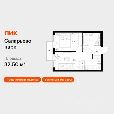 Продаётся 1-комн. квартира площадью 35,2 кв.м на 11 этаже 16 этажного дома (Корпус 57.4, Секция 4) проекта ПИК Саларьево парк. Светлый просторный подъезд на уровне земли, функциональная планировка, большие окна, предчистовая отделка. Жилой район "Саларьево парк" расположен в Новой Москве, в четырёх километрах от МКАД по Киевскому шоссе. Две станции метро: "Саларьево" и "Филатов луг", — находятся в пешей доступности от проекта. Дойти до них можно за 510 минут. В квартале уже создана качественная среда, где есть абсолютно всё для полноценной жизни, работы и отдыха. Благодаря удобному расположению проекта всё важное будет рядом: детские сады, школы, кафе и рестораны, шопинг в торговых центрах, фитнес и даже аэропорт. Все корпуса в квартале гармонично сочетаются, образуя единую городскую среду. Между собой их объединяет невысокая этажность и натуральная цветовая гамма. Здесь приятно гулять и проводить время на улице всей семьёй. В "Саларьево парке" создана уникальная образовательная среда, включающая в себя шесть школ, рассчитанных на 6 250 учеников. Две из них уже открыты, их посещает 2 300 детей. Также на территории "Саларьево парка" находится 12 детских садов, один из которых с бассейном. Сейчас уже открыты 7 садов. В "Саларьево парке" открыта уникальная игровая площадка — PlayHub "Оригами". Здесь есть ручей, горка-труба и рельефные холмы. Взрослые смогут отдохнуть в уютном кафе, пока дети играют. Также на территории проекта есть SportHub — большая спортивная зона, разделённая по интересам и возрастам. Здесь можно заниматься разными видами спорта: футболом, баскетболом, волейболом и стритболом. Зимой центральную часть площадки превращают в каток. Во дворах-парках жилого квартала есть места для отдыха, детские и спортивные площадки. На первых этажах домов расположены магазины, кафе и полезные сервисы. Также вблизи проекта есть несколько масштабных торговых центров. До ТЦ "Саларис" пять минут пешком, до "Рио", Metro Cash & Carry и "Леруа Мерлен" — пять минут на автомобиле. Артикул 1018631 (Застройщик ООО "Специализированный Застройщик "Тирон")