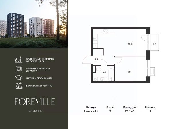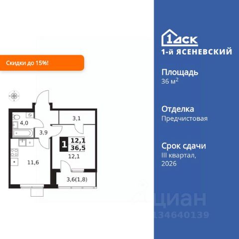 Прямая продажа от застройщика! Жилой Комплекс класса Комфорт Плюс. Продаётся 1-к квартира номер 434 общей площадью 38.2 кв.м. на 11-м этаже 18 этажного здания. Отделка Whitebox. Цена с учётом скидки. Особенности квартиры: - Квартиры рядом с метро - м. Корниловская 9 мин пешком - 63 га лесопарка за окнами - Школа c it-кластером и бассейном. 2 детских сада - Линейная планировка - максимальная функциональность и удобство. - Увеличенная ширина окна/окон - больше света и визуального простора. - Можно оборудовать рабочее место - комфорт для работы и учёбы. - Просторная кухня - место для семейных ужинов и кулинарных экспериментов. - Ниша под шкаф - компактное и удобное место для вещей. - Лоджия - уютное место для отдыха и тишины. Квартира с предчистовой отделкой (White box). Вам не придется заниматься черновыми и трудоёмкими работы, а чистовую отделку и дизайн - сделайте на свой вкус. Информация о комплексе: В жилом комплексе комфорт-плюс класса "1-го Ясеневского" доступны преимущества двух стилей жизни. Ведь в пешей доступности метро, школа с 25-метровым бассейном и IT-кластером и при этом целых 63 га благоустроенного Троицкого лесопарка под окнами, где так приятно дышать свежим воздухом и слушать пение птиц. Собственная закрытая территория "1-го Ясеневского" представляет собой уютный оазис. Здесь и зеленый освещенный бульвар для прогулок, система велодорожек, маленькая городская площадь, кафе, пекарни и кофе поинты. А еще дворы без машин и многоэтажная парковка. Изюминка территории - фруктовые деревья во дворах и городские сады. "1-й Ясеневский" - всего в 1 км от МКАД, на территории новой Москвы. Жилой комплекс, где есть все необходимое для современного человека. Транспортная доступность: До метро "Корниловская" - 12 минут пешком До метро "Тютчевская" - 25 минут пешком До метро "Теплый стан" - 10 минут на транспорте До метро "Ольховая" - 30 минут на общественном транспорте Личный автотранспорт: Выезд на Калужское шоссе - 500 м МКАД - 1 км Внутренняя инфраструктура: ЖК "1-й Ясеневский" можно назвать идеальным местом для жизни семьи с детьми. Здесь буквально за домом находится Троицкий лесопарк - излюбленное место прогулок молодых родителей. А во внутренних дворах под детские площадки выделены специальные зоны. Они оборудованы всем, что нужно для счастливого детства: современными и максимально безопасными качелями, песочницами и лазалками. Оборудование и игровые сценарии на детских площадках спроектированы вместе с командой детских психологов для правильного развития ребенка и для повышения их интереса. Также рядом с домом два детских садика, один из которых уже построен и школа на 1100 мест. Школу по праву можно назвать образцовым учебным заведением. В ней закладываются основы успешного будущего. Здесь есть класс робототехники, IT-кластер, 25-метровый бассейн и прекрасно оборудованные спортзалы.