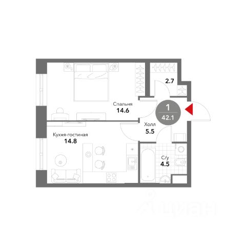 Продаётся 1-комнатная квартира 470, площадью 42,22 м², на 11 этаже в ЖК "MYPRIORITY Дубровка" корпус 2. Стоимость — от 20743806 руб. Квартира без отделки, планировка угловая, окна на улицу.