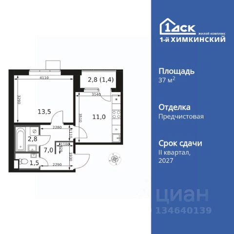 Прямая продажа от застройщика! Жилой Комплекс класса Комфорт. Продаётся 1-к квартира номер 262 общей площадью 37.4 кв.м. на 11-м этаже 16 этажного здания. Без отделки. Особенности квартиры: - Мастер-зона с гардеробной. Просторное место для отдыха и удобного хранения вещей. - Линейная планировка - максимальная функциональность и удобство. - Гардеробная - удобство для хранения и организации вещей. - Ниша под шкаф - компактное и удобное место для вещей. - Лоджия - уютное место для отдыха и тишины. Информация о комплексе: Квартал класса комфорт плюс, где современное городское пространство граничит с удивительной природой вокруг. 1-й Химкинский расположен на территории в 102 га и органично вписан в природное окружение Химкинского леса и канала им. Москвы. В проекте предусмотрена богатая коммерческая инфраструктура с собственным торговым центром, общеобразовательные учреждения и социальные объекты. Изюминкой жилого комплекса будут спортивно-оздоровительный комплекс с термами и SPA и семейный парк развлечений. Транспортная доступность: ЖК "1-й Химкинский" дает возможность выбрать любой способ передвижения как до города, так и до самых разных объектов, которые могут представлять интерес для его жителей. Не важно, какой способ передвижения вы предпочитаете, успевать всегда и везде можно вне зависимости от выбора транспорта. - 8 мин. пешком (800 м) до остановки "Золотая Арка" -10 мин пешком (1 км) до остановки "Поворот на Ивакино" Внутренняя инфраструктура: - Безопасность: закрытые дворы без машин, безбарьерная среда и сквозные подъезды, камеры на детских площадках с возможностью трансляции на смартфоне - Идеальный отдых в кругу семьи: семейный парк развлечений на территории, торговый центр (2-х этажный) общей площадью более 8 тыс. кв. м с фудкортом - Образование: 3 детских сада и современная муниципальная школа на 2450 мест - Спортивная среда: закольцованный веломаршрут с навигацией, спортивный комплекс с термами, закрытый тренажерный зал и зоны ворк-аута - Социальные объекты: поликлиника со станцией скорой помощи, пожарное депо - Подземный паркинг и кладовые помещения на -1 этаже, станция техобслуживания и автомойка на территории