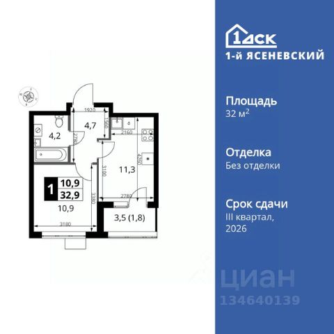 Прямая продажа от застройщика! Жилой Комплекс класса Комфорт Плюс. Продаётся 1-к квартира номер 221 общей площадью 35.9 кв.м. на 11-м этаже 16 этажного здания. Без отделки. Особенности квартиры: - Квартиры рядом с метро - м. Корниловская 9 мин пешком - 63 га лесопарка за окнами - Школа c it-кластером и бассейном. 2 детских сада - Линейная планировка - максимальная функциональность и удобство. - Гибкая планировка - создайте пространство по своему вкусу. - Можно оборудовать рабочее место - комфорт для работы и учёбы. - Просторная кухня - место для семейных ужинов и кулинарных экспериментов. - Ниша под шкаф - компактное и удобное место для вещей. - Лоджия - уютное место для отдыха и тишины. Информация о комплексе: В жилом комплексе комфорт-плюс класса "1-го Ясеневского" доступны преимущества двух стилей жизни. Ведь в пешей доступности метро, школа с 25-метровым бассейном и IT-кластером и при этом целых 63 га благоустроенного Троицкого лесопарка под окнами, где так приятно дышать свежим воздухом и слушать пение птиц. Собственная закрытая территория "1-го Ясеневского" представляет собой уютный оазис. Здесь и зеленый освещенный бульвар для прогулок, система велодорожек, маленькая городская площадь, кафе, пекарни и кофе поинты. А еще дворы без машин и многоэтажная парковка. Изюминка территории - фруктовые деревья во дворах и городские сады. "1-й Ясеневский" - всего в 1 км от МКАД, на территории новой Москвы. Жилой комплекс, где есть все необходимое для современного человека. Транспортная доступность: До метро "Корниловская" - 12 минут пешком До метро "Тютчевская" - 25 минут пешком До метро "Теплый стан" - 10 минут на транспорте До метро "Ольховая" - 30 минут на общественном транспорте Личный автотранспорт: Выезд на Калужское шоссе - 500 м МКАД - 1 км Внутренняя инфраструктура: ЖК "1-й Ясеневский" можно назвать идеальным местом для жизни семьи с детьми. Здесь буквально за домом находится Троицкий лесопарк - излюбленное место прогулок молодых родителей. А во внутренних дворах под детские площадки выделены специальные зоны. Они оборудованы всем, что нужно для счастливого детства: современными и максимально безопасными качелями, песочницами и лазалками. Оборудование и игровые сценарии на детских площадках спроектированы вместе с командой детских психологов для правильного развития ребенка и для повышения их интереса. Также рядом с домом два детских садика, один из которых уже построен и школа на 1100 мест. Школу по праву можно назвать образцовым учебным заведением. В ней закладываются основы успешного будущего. Здесь есть класс робототехники, IT-кластер, 25-метровый бассейн и прекрасно оборудованные спортзалы.