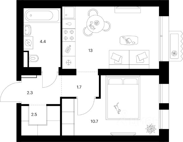 Продаётся 1-комнатная квартира в сданном доме (Корпус 7.1), срок сдачи: IV-кв. 2025, общей площадью 39.9 кв.м., на 11 этаже. О районе