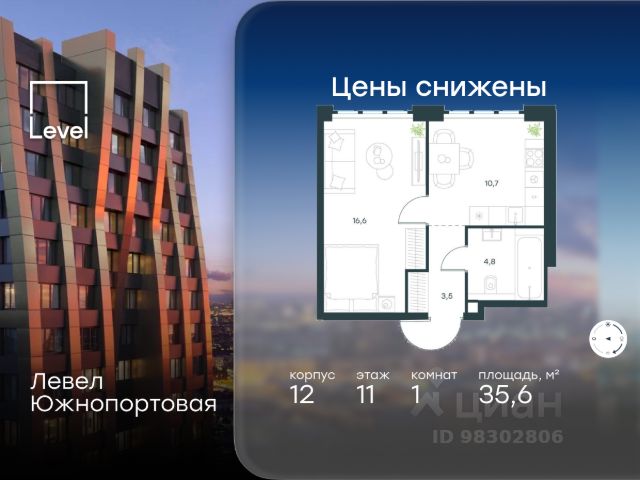 Предложение месяца от застройщика: - Скидка до 10% на ограниченный пул квартир - Рассрочка 0% на 1 год - Семейная ипотека без удорожания, ставка 4% - Ипотека для всех на весь срок, ставка 11,89% Продаётся 1-комнатная квартира от застройщика ГК "КОРТРОС" в жилом комплексе бизнес-класса УЛЬТИМА Сити. Квартира расположена на 11 этаже 45 этажного корпуса 1. Общая площадь 56,68 м². Без отделки. УЛЬТИМА Сити — жилой комплекс бизнес-класса в перспективном районе на юго-востоке Москвы. На его территории появятся 9 башен на 756 этажей, двухуровневый подземный паркинг, собственная инфраструктура, включая детский сад и школу. Всего девелопер благоустроит территорию в 2,6 га. Ближайшая станция метро — "Южный порт". Она откроется в 2028 году и будет находиться в 2-х минутах ходьбы. А прямо напротив расположится остановка водного автобуса-электрохода "Синичка". Дорога от квартала будет удобна и для автомобилистов: - до Кремля — 12 км - до МКАД — 12 км - до выезда на ТТК — 3 км - до Садового кольца — 8 км В двух корпусах первой очереди УЛЬТИМА Сити этажностью 45 и 52 реализуется 1 079 квартир с продуманными, рациональными планировочными решениями. В ассортиментной линейке представлены однокомнатные квартиры от 28,2 до 61 кв. м, двухкомнатные лоты от 44,3 до 95,4 кв. м, квартиры с тремя (71 — 115,57 кв. м) и четырьмя спальнями (106,6 — 114,97 кв. м). В экспозиции также есть квартиры с террасами, лоджиями, тремя и четырьмя санузлами, а также с функциональными нишами-кладовыми на кухнях. Запроектированы и эксклюзивные двухуровневые резиденции со вторым светом, в том числе с видом на Москву-реку, площадью от 77,7 до 141,9 кв. м. В рамках проекта запланировано строительство 9 корпусов, школы на 500 учащихся и детского сада на 225 мест. Еще будет создана продуманная инфраструктура для жителей: детские и спортивные площадки, амфитеатр для мероприятий, беседки и теплицы для садоводства, коворкинг, детский клуб и ресторан с открытой террасой. Доступ в жилой комплекс осуществляется по биометрическому контролю. Вокруг квартала будет приватная территория с видеонаблюдением и консьерж-сервисом 24/7. Лобби корпусов будут иметь двойные выходы: на улицу и во внутренний закрытый двор.