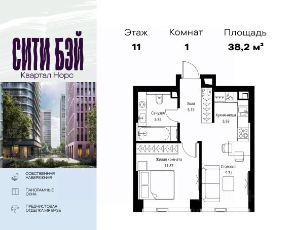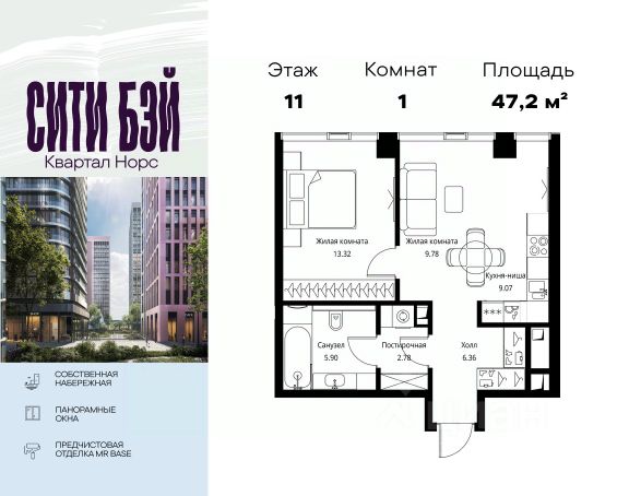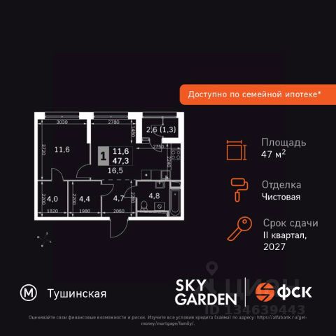 Id 60970. Идет выдача ключей! Продаётся с РЕМОНТОМ по переуступке 1-к квартира с финальной отделкой общей площадью 43.1 кв.м на 11-м этаже в ЖК Sky Garden!