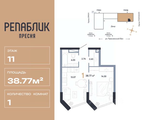 В престижном районе Пресня, на перекрестке делового и исторического центров Москвы, продается однокомнатная квартира площадью 48.90 кв. м без отделки. Квартира находится на 11 этаже 48-этажного дома, в новом элитном жилом комплексе "Начало" от девелопера "Донстрой". Реализация проекта запланирована на 1 квартал 2030 года. Начало - футуристический дом на Пресне в нескольких минутах от Сити и Садового кольца. Проект по-настоящему космического масштаба, где есть все, чтобы раскрыть себя и свои возможности. Расположение Пресня - один из самых престижных районов Москвы. Жить здесь - значит стать частью истории столицы, быть в эпицентре деловой активности города и ощущать, как сама Вселенная вращается вокруг вас. - 5 минут пешком до Красногвардейских прудов; - 15 минут пешком до ст. метро "Улица 1905 года"; - 6 минут на автомобиле до Садового кольца и небоскрёбов "Москва-Сити"; - 12 минут на автомобиле до Кремля. Архитектура как путешествие Как росток пробивает скалу, как растет кристалл, как ракета устремляется ввысь - так формируется архитектурный образ этого дома. Точно выверенный баланс между футуристичными формами и функциональным содержанием дома выводит жизнь в нем на новую орбиту. Стеклянные фасады отражают небо и город, превращая здание в зеркало для окружающего ландшафта. Двор между небом и землёй Просторная территория двора с тремя тематическими зонами отдыха: "Млечный путь" - для детских игр и развлечений; "Космический сад" - для тихого отдыха и релакса; "Метеоритный сад" - для любителей спорта. Открытый променад - сквозной маршрут на крыше стилобата с зонами отдыха, занятий спортом, детских игр и совместной работы. Все площадки плавно связаны между собой прогулочной дорожкой. Теплая кольцевая галерея и мосты над пространством двора - все корпуса "стыкуются", точно модули космической станции. Главный центр притяжения В составе проекта возводится собственный комьюнити-центр, где создана идеальная атмосфера для любых начинаний: - Детский клуб для будущих покорителей Вселенной; - Коворкинги для решения задач планетарного и космического масштабов; - Переговорные для судьбоносных и просто важных встреч; - Лаунжи с атмосферой дзена и релакса; - Библиотека для спокойного чтения; - Кинотеатр для классики и блокбастеров. Территория комфорта и приватности Всё нужное рядом: - Современный образовательный центр со школой и детским садом - для ваших детей; - Фитнес-центр с бассейном - для релакса и борьбы со стрессом; - Ресторанная улица: кафе, рестораны, летние террасы - для деловых обедов и семейных ужинов; - Пекарня и минимаркет в доме - для ежедневных покупок; - Сквер у дома - для неспешных прогулок и спокойного отдыха; - Никаких такси на улице. Машина заберет вас прямо в подземном паркинге вашего корпуса.