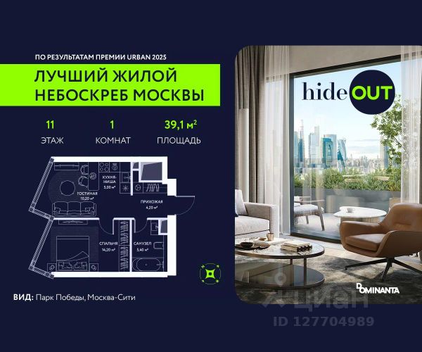 Прямая продажа от застройщика. Продается 1-комнатная квартира площадью 42,7 кв.м. на 11-м этаже 34-этажного дома в ЖК hideOUT с панорамными видами: Центр. Высота потолков 3,25 м. hideOUT — премиальный проект компании Dominanta. Это новый уровень жизни и комфорта без компромиссов. Две башни — 34 и 49 этажей — открывают захватывающие виды на Москву. Архитектурной доминантой проекта становится мост, соединяющий башни на высоте 80 метров. Закрытая территория, охрана 24/7, зона экстренной безопасности на подземном уровне, система пожаротушения. На мосту между башнями на 22-м этаже находится SocialHUB — предусмотрено 16 комфортных пространств для работы, отдыха и развлечений с панорамными видами и клубным форматом доступа. Концепция благоустройства hideOUT — баланс между природой и технологичным городом будущего. На территории сада предусмотрены 15 зон для отдыха, работы, спорта и детей. Знаковым местом станет центральная площадь с амфитеатром и водопадом — сочетание камней, растений и струящейся воды создает идеальный баланс с природой. В проекте действуют привлекательные условия покупки: - семейная ипотека на старых условиях - успейте вдвое больше до 31.01.2026. - скидка до 20% при 100% оплате стоимости лота и ипотеке без субсидирования. Предложение действует до 31.01.2026. - рассрочка 0% на 3 года с первоначальным взносом от 20%. Период рассрочки до 36 месяцев. Застройщик АО "СЗ "ХАЙДАУТ", ИНН 7729058636, ОГРН 1027739319420. Проектная декларация на сайте наш.дом.рф. Предложение не является публичной офертой.
