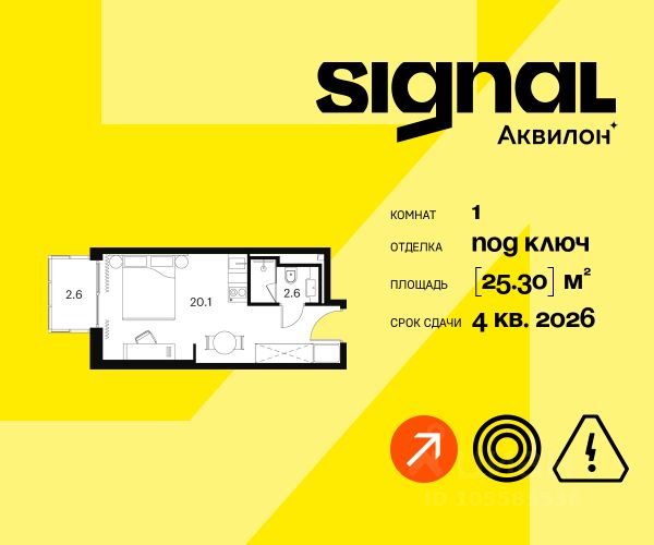 Продажа от застройщика. Продаются уютные однокомнатные апартаменты на 11 этаже 23-этажного современного апарт-комплекса Signal. Срок сдачи: 4 кв. 2026 г. Отделка: Апартаменты передаются в предчистовой отделке white box. Возможен заказ чистовой отделки. Мы выполним все инженерные и черновые отделочные работы, оставив вам самое приятное - создание индивидуального интерьера и неповторимого уюта. А если отпраздновать новоселье хочется как можно скорее, вы сможете заказать чистовую отделку в одном из двух цветовых вариантов: Beigestone или Greystone. Вам останется только завезти мебель и начать наслаждаться жизнью в SIGNAL. Расположение: ЖК Signal расположен на перекрестке столичных маршрутов. По Сигнальному проезду легко выехать на Алтуфьевское шоссе, СВХ и проспект Мира. Транспортная доступность: - 3 минуты пешком до станции Владыкино - 15 минут на автомобиле до ТТК - Ботанический сад в 10 минутах ходьбы Внутренняя инфраструктура Signal: - Фитнес-центр на первом этаже - Игровая площадка и приватном дворе - Коворкинг и уединенные зоны для работы - Торговая галерея Преимущества: - SoundStop - Система защиты от шума, дополнительная шумоизоляция - Система умного дома InHome 3.0 - управление домом нажатием нескольких кнопок - Система Termo-S, позволяющая сэкономить на оплате теплоснабжения - Фитнес-зал позовлит поддерживать себя в форме - Лаунж-зоны, где можно расслабиться - Лобби-бар с большим выбором напитков и закусок - Гостиничный сервис и консьерж reception 24/7 для решения бытовых задач - Апартаменты обслуживает профессиональная управляющая компания - Арт-объекты во дворах для стильного контента Signal - это дом, - чья молодость духа и бодрый настрой заряжают всех, независимо от возраста - который задает абициозную планку с самого начала карьеры - где живут интересные события и встречаются хорошие люди