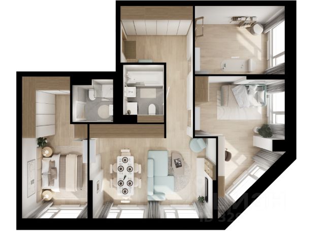 Двухкомнатная евроквартира для молодой семьи и любителей комфорта и уюта. -Угловой вариант планировки с видом на две стороны -Просторная кухня-гостиная для отдыха, общения и приёма гостей -Приватная спальня с тремя окнами и местом для гардеробной -Удобная ниша для системы хранения в коридоре -В квартире предусмотрено смешанное остекление Жилой комплекс "Акценты" — это монолитный проект бизнес-лайт класса, расположенный в северной части Москвы, в районе Восточное Дегунино. Комплекс объединяет 19 жилых корпусов высотой от 7 до 30 этажей, возводимых на территории 11,7 гектара. В рамках проекта предусмотрены квартиры различной площади — от компактных студий до просторных трехкомнатных решений, с высотой потолков 2,85 м и вариантами отделки, включая чистовую отделку. Благодаря архитектуре бюро АПЕКС и панорамному остеклению, помещения наполняются естественным светом. Удачное расположение рядом с метро "Лианозово" и МЦД делает комплекс удобным как для жизни, так и для инвестиций. Комфорт и безопасность Каждый корпус оборудован современными лифтами с выходом на все этажи, включая подземный паркинг. Входные группы спроектированы с учетом принципов безбарьерной среды: предусмотрены места для колясок и велосипедов. В лобби вас будут ждать уютное пространство с зоной для кофе, стеллажами для обмена книгами и мягкой зоной ожидания такси или курьера. Для автомобилистов организован двухуровневый подземный паркинг на 494 машиномест, с системой распознавания номеров и станцией подкачки шин. Вся территория комплекса закрыта и охраняется: контроль доступа и система видеонаблюдения обеспечивают безопасность жителей. Отдельное внимание уделено цифровой инфраструктуре — проект поддерживает современные "умные" сервисы для комфортного управления бытом. Архитектура Архитектурная концепция ЖК разработана бюро АПЕКС: элегантные фасады с натуральными фактурами, панорамное остекление и переменная этажность формируют выразительный и современный облик. Дизайн каждой секции уникален и дополнен эргономичными планировочными решениями. Ступенчатая структура застройки обеспечивает приватность и оптимальную инсоляцию. Благоустройство На территории комплекса реализована концепция "двор без машин". Центральное пространство оформлено как закрытый двор-сад с пешеходными аллеями, зонами отдыха, террасами и вечерней подсветкой. Здесь находятся детские и спортивные площадки, спортивные площадки, коворкинги на открытом воздухе и зоны отдыха. Также предусмотрены зоны для выгула собак с удобствами для гигиены питомцев. Окружение и досуг ЖК "Акценты" расположен в окружении развитой городской инфраструктуры. В шаговой доступности находятся школы, супермаркеты, спортивные объекты и остановки общественного транспорта. До станции метро и МЦД "Лианозово" можно дойти за 7 минут, а до станции "Яхромская" — за 1215 минут. Поблизости расположены природные зоны — парк "Северные Дубки" и ландшафтный заказник "Лианозовский", где можно гулять, заниматься спортом и отдыхать на свеж