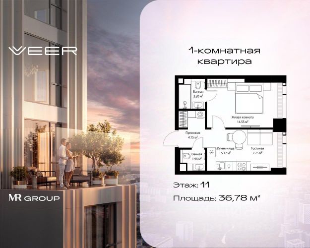 Старт продаж новой очереди! Продаётся 1-комнатная квартира общей площадью 40.62 м² без отделки в ЖК VEER на 11-м этаже 25 этажного дома. VEER.2 — вторая очередь футуристичного квартала бизнес-класса VEER. Это новая экосистема в престижном Западном округе Москвы, поражающая масштабностью внутренней инфраструктуры. ЖК находится всего в 5 минутах от Кутузовского проспекта и в 15 минутах от Сколково. Ансамбль из четырех стеклянных башен с доминантой в 237 метров разработан по принципу современного урбанизма и выражен в лаконичных объемах — параллелепипедах со сглаженными углами, которые придают зданиям утонченный вид. Расположение и транспортная доступность: • Образовательный комплекс в составе топовой школы, состоящий из двух зданий: основное на 1500 школьных и 450 дошкольных мест, отдельное здание детского сада на 300 мест. • Парк "Долина реки Сетунь" площадью более 700 гектаров • 15 минут по Кутузовскому проспекту до ужина в центре с видом на Москву-реку • Рядом МГУ, МГИМО, РАНХиГС и Академия ФСБ • м. "Давыдково" рядом и новые станции метро в будущем Инфраструктура: Двор в VEER.2 — это ассиметричные холмы, каменные "лабиринты", зеленые ковры и хвойные островки с единой живой экосистемой. Здесь есть все: • Павильон умиротворения Место отдыха под навесом в спокойной части двора, окруженное деревьями. • Активная тропа Тактильная дорога из камней разного диаметра для расслабляющих прогулок. • Бизнес-гарден Оборудованное пространство для работы на свежем воздухе со столом и встроенными розетками. • Детская площадка Двухуровневая площадка "Ботаника" с песочницей, переговорной трубой и горкой "Дружба". Компания MR Group предлагает своим клиентам специальные условия приобретения квартир в рамках программ ипотечного кредитования от банков-партнеров.