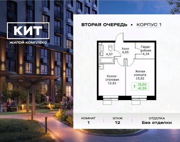 Продаётся 1-к квартира 41.39 кв.м. без отделки в ЖК "КИТ2" на 12-м этаже 25 этажного дома.Жилой комплекс "Кит 2" спроектирован в урбанистической концепции "Город в Городе". Объект бизнес-класса предлагает рациональный подход к набору опций, необходимых для гармоничной жизни. Проект представляет собой два корпуса, которые образуют единую приватную территорию. Ее доминантой является двор с красивым ландшафтным дизайном и различными зонами, ориентированными на интересы жителей разного возраста. При создании пространства в приоритет ставился комфорт жителей. В шаговой доступности находятся: торговый центр, рестораны, кинотеатры, спортивный зал, образовательные учреждения и множество других объектов в сфере услуг. Преимущества проекта: - 3 корпуса для приватной жизни - Видовые характеристики (просматриваются Москва - Сити и Останкинская телебашня) - Широкая квартирография по всем типам квартир - Увеличенное остекление - 3 варианта отделки: БОРДО, СТОКГОЛЬМ, ОСЛО - Богатая развлекательная инфраструктура - Высокий уровень безопасности территории Расположение комплекса: - 2,2 км до Волковского шоссе - 2,8 км до Ярославского шоссе - 5,7 км до МКАД - 5 минут пешком до ж/д станции "Мытищи" и Автовокзала - 18 минут до станции метро "Комсомольская" - 30 минут до станции метро "Медведково"