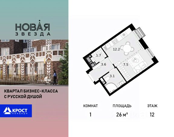 Продаётся 1-к квартира 31.8 кв.м. на 12-м этаже 22 этажного дома, корпус 6 - Резиденция "Хабаровск". Без отделки. Легендарный квартал "Новая звезда" продолжается II очередью, которая спроектирована как мультифункциональный кластер. ЖК "Новая Звезда" расположен на территории Новой Москвы, в 10 мин. от м. Теплый стан и в 9 мин. пешком от строящейся станции метро "Бачуринская". Дизайн квартала спроектирован так, чтобы создать 2 города — Гостиный двор и комплекс жилых резиденций. Гостиный двор это стилобат, в котором разместятся рестораны, магазины, спортивные секции, детские кружки. Это место для активной городской жизни прямо в вашем квартале. Гостиный двор, безусловно, является уникальным форматом организации общественной жизни, предлагая жителям квартала весь необходимый спектр услуг в шаговой доступности от дома.. Жителям II очереди квартала "Новая звезда" будут доступны все инфраструктурные преимущества единого квартала: - образовательный кластер с уже построенной инновационной школой нового поколения; - спортивная инфраструктура; - торговые площади с услугами на первых этажах жилых домов.Прямая продажа от застройщика ООО СЗ "ГСД".