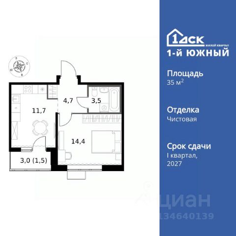 Прямая продажа от застройщика! Жилой Комплекс класса Комфорт Плюс. Продаётся 1-к квартира номер 581 общей площадью 35.8 кв.м. на 12-м этаже 24 этажного здания. Отделка Whitebox. Особенности квартиры: - МЦД-5 в пешей доступности - Квартал с собственной набережной - Свои 2 детских сада и школа - Линейная планировка - максимальная функциональность и удобство. - Линейная кухня - функциональность и практичность в одном решении. - Гардеробная - удобство для хранения и организации вещей. - Лоджия - уютное место для отдыха и тишины. Квартира с предчистовой отделкой (White box). Вам не придется заниматься черновыми и трудоёмкими работы, а чистовую отделку и дизайн - сделайте на свой вкус. Информация о комплексе: Комплекс 1-й Донской расположен в 7 км от МКАД по трассе М-4 Дон. В нем сочетаются все плюсы комфортной городской среды и природного окружения. В проекте достаточно большой процент квартир, выходящих на 2-3 стороны света. Секции-маяки формируют у зданий визуальную L-форму, что придает застройке структуру и ритмику объемов. На ощущение динамики работает и разная этажность зданий. Теплая цветовая палитра фасадов отражает природу Дона. Вечерами дома преображаются благодаря архитектурной подсветке, выгодно выделяясь на городском фоне. Природа оказывает положительное влияние на человека на всех уровнях восприятия: через зрение, запахи, звуки, тактильные ощущения. Неподалеку от ЖК Первый Донской: Ермолинский парк, Видновский лесопарк, Жуковский парк Транспортная доступность: Комплекс удобно расположен в 7 км от МКАД по трассе М-4 Дон (через Видное). Расстояние до Каширского шоссе составляет 12 км. Добраться до метро и центра Москвы позволяет развитая сеть маршрутов общественного наземного транспорта. Действующая ж/д станция Калинина Павелецкого направления в 15-17 минутах ходьбы (МЦД-5 в 2025-2026 гг). Внутренняя инфраструктура: Проект 1-й Донской соседствует с бурно развивающимся районом, основная инфраструктура которого уже сложилась. В строительстве современных жилых комплексов в округе есть свои плюсы: здесь формируется продуманная и комфортная городская среда. Что касается внутренней инфраструктуры, на территории квартала будут расположены собственные муниципальные 2 детских садика и школа, которые помогут совместить приятное с полезным. Территория комплекса пронизана целой сетью живописных пешеходных маршрутов, позволяющих попасть в любой уголок района. Основные пути, как водится, "торговые". Они проходят вдоль магазинов, кафе и других представителей коммерции и отделяются от проезжей части зеленой "фито" - стеной. Среди крупных социальных объектов предусмотрены своя поликлиника и торговый центр с примыкающей площадью для общественных мероприятий. Уют начинается с продуманного подъезда. Сквозные подъезды наполнены светом благодаря сплошному остеклению. Вход в них есть и с улицы, и со двора.