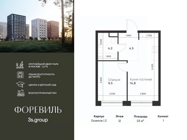 Продажа 1-комнатных квартир на 12 этаже рядом с метро Коммунарка
