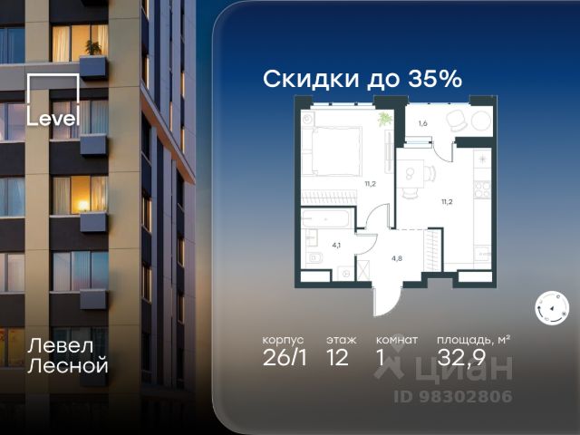 Продаётся 1-комн. квартира площадью 32,31 кв.м на 12 этаже 15 этажного дома (Корпус 3.6, Секция 7) проекта ПИК Квартал Мит. Светлый просторный подъезд на уровне земли, функциональная планировка, большие окна, c отделкой. "Квартал Мит" строится в экологически чистом районе Митино, где по соседству расположен большой лесопарк, а с двух сторон протекают реки Сходня и Журавка. Для семей с детьми здесь появится школа и два детских сада. В 20 минутах пешком находится станция метро "Пятницкое шоссе", а за 10 минут на автомобиле можно доехать до МКАД. Архитектура от архитектурного бюро "Слава+" Концепция квартала сочетает эстетику и функциональность. Башня-доминанта цвета красной охры и разновысотные корпуса терракотового, белого и графитового оттенков формируют узнаваемый силуэт современного городского пространства. Просторные террасы, разнообразные балконы и окна в пол придают облику динамичность и дарят квартирам уютные места для отдыха. Первые этажи с панорамными окнами создают сцену для яркой городской жизни. Здесь появятся пространства для прогулок, летние террасы, рестораны и коммерческие помещения. Комфорт "Серии плюс". При входе в дом жителей встретят светлые просторные лобби с высокими потолками — попасть сюда можно как со стороны улицы, так и со двора. В лобби будет зона ожидания, велосипедная и колясочная. Быстро и с комфортом подняться на нужный этаж помогут бесшумные скоростные лифты. На подземном этаже появится паркинг и индивидуальные кладовые, где удобно хранить сезонные вещи. Артикул 1035396 (Застройщик АО СЗ "ПФК")