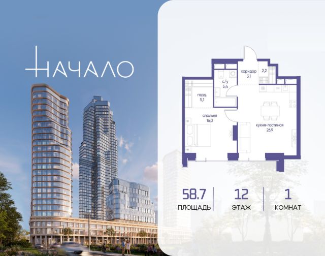 Продаётся 1-комнатная квартира общей площадью 54.50 м² на 12 этаже Жилого Комплекса Бадаевский. О нем говорили. Его ждали. Жилой комплекс "Бадаевский" на Кутузовском проспекте — это место для жизни, которое займет место в истории. Девелопер Capital Group. В "Бадаевском" исторические здания завода и футуристические "парящие" дома создают единый комплекс, который станет новой достопримечательностью и символом Москвы. Панорамное остекление, террасы и веранды дарят неординарные и захватывающие виды. Благодаря расположению домов и панорамному остеклению, жилые пространства в "Бадаевском" будут наполнены светом. А виды из окон домов-"лент" на Москву-реку, пивоваренный завод, небоскребы "Москва-Сити" и Белый дом дополнены принципиально новым ощущением высоты. На территории Бадаевского завода появится масштабный ландшафтный парк с концепцией "русский лес". Впервые в истории района Дорогомилово у жителей появится прямая связь набережной Тараса Шевченко с Кутузовским проспектом. Близость Москвы-реки добавляет к преимуществам "Бадаевского" природную энергетику и приятные прогулки на свежем воздухе. Подземная парковка позволит сделать территорию завода полностью пешеходной, а сам комплекс представит новый подход к организации открытого и уединенного пространства в центре Москвы. Расположение в начале Кутузовского проспекта делает проект не только престижным, но и удобным: до Третьего транспортного и Садового кольца можно доехать за 5 минут, а Кремль и основные исторические достопримечательности расположены в 15 минутах на автомобиле. Напротив "Бадаевского" находится офисный кластер "Москва-Сити". Для жителей комплекс будет создано не только новое масштабное благоустройство, но и вся необходимая инфраструктура. В исторических корпусах появятся магазины, бутики, кафе и рестораны, коворкинг и крафтовая пивоварня, а в зданиях элеваторов — русская баня. Кроме того, запланирован фермерский рынок и досуговый кластер с музыкальной студией, центром детского творчества и фитнес-центром с бассейном.