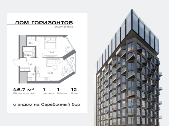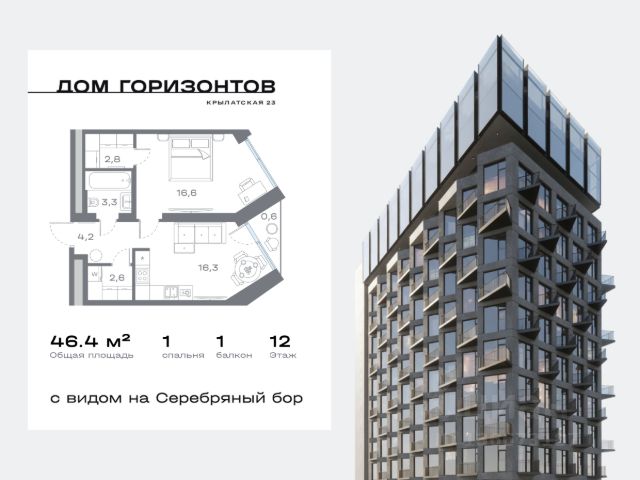 Клубный дом в Крылатском районе уникальный проект для данной локации • Скидки месяца на избранный пул лотов • Рассрочка на выгодных условиях ЛОКАЦИЯ: • Самый экологичный район столицы — более 70% территории Крылатского занимают природные зоны и акватория. • Крылатские Холмы в пешей доступности • 10 минут на автомобиле от Москва-Сити • Удобные выезды на основные магистрали: ТТК, Садовое кольцо ИНФРАСТРУКТУРА РАЙОНА: • Богатая спортивная инфраструктура: велотрек, гребной канал, ледовый дворец, горнолыжная база, теннисные корты и т.д. • Престижные школы и детские сады ДОМ ГОРИЗОНТОВ • 135 квартир и 7 пентхаусов • - 2 этажа паркинга с зарядками для электрокаров • Приватная закрытая территория с богатой инфраструктурой для резидентов Квартира видовая с балконом и панорамным остеклением: - Уютная функциональная планировка - Кол-во комнат: 1 - Общая площадь - 45.89 кв.м. - Кухня 7.19 кв.м - 12 этаж 27 этажного дома Вечные виды на зеленые просторы Серебряного Бора и сверкающую ленту Москвы-реки с аркой Живописного моста. ИНФРАСТРУКТУРА УДОБНОЙ ЖИЗНИ: • Круглосуточное видеонаблюдение и контроль доступа • Консьерж-сервис 24/7 • Зарядные станции для электромобилей на подземном паркинге • Индивидуальные келлеры для хранения спортивного инвентаря • Детский физкультурный комплекс с двумя бассейнами Дом Горизонтов — клубное пространство в одном из самых зелёных районов Москвы, где каждая деталь дарит вдохновение и ощущение свободы. Оперативный показ квартиры! Бронирование по телефону