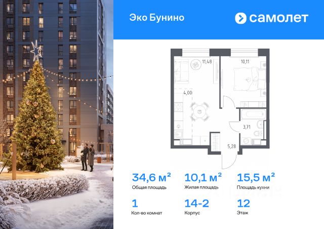 Продаётся 1-комнатная квартира в строящемся доме (Корпус 5.1), срок сдачи: II-кв. 2026, общей площадью 36.9 кв.м., на 12 этаже. О районе