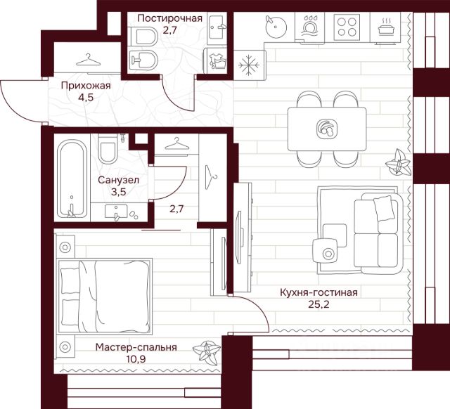 1-комнатная квартира площадью 36,8 м2. Высота потолков 3,48 м. Этаж 12 из 42. О проекте АУРА новая премиальная доминанта Москвы в 10 минутах от Садового кольца. Проект состоит из 42-этажной Бронзовой башни и 41-этажной Серебряной. Рядом набережная Москвы-реки, Даниловский рынок, музеи и галереи, престижные школы и вузы. Двор и благоустройство Приватная территория АУРЫ состоит из нескольких функциональных зон для тихого отдыха, работы и активного времяпровождения на свежем воздухе. На нижнем уровне расположены детские и спортивные площадки, скалодром и крытый павильон для подвижных игр. Выше — амфитеатр для отдыха и вечерних променадов, уличный коворкинг с мебелью и лаунж-зоны с лежаками у воды. На крыше — тихий уголок для занятий йогой, встречи рассветов и наслаждения закатами. По всему двору проложены пешеходные дорожки с подогревом в зимний сезон. Придомовую территорию АУРЫ украсит уникальный для Москвы объект — скала из натурального камня с водопадом, которая станет новой городской достопримечательностью. Эксклюзивная инфраструктура Только для резидентов: • Бьюти-комната • Коворкинг, переговорные и акустические кабинеты • Детская игровая комната • Спортзал и студия для тренировок • Просторные колясочные • Сервисная комната • Лапомойки для домашних питомцев Инфраструктура в составе проекта: • Ресторан авторской кухни • Современная медицинская клиника • Частный детский сад • Бизнес-центр класса "А" • Коммерческие помещения, закрывающие любые потребности — супермаркет, химчистка и др. Атрибуты комфорта • Индивидуальная вентиляция квартир • Вентиляция с очисткой воздуха в общих зонах • Мультизональное центральное кондиционирование (VRF) • Горячая вода круглый год • Вода качества, сопоставимого с питьевой • Усиленная звукоизоляция квартир Входные группы • Гранд-лобби в стиле современной роскоши • Дизайнерские лобби в каждой башне • Панорамное остекление Квартиры Более 40 планировок: от уютных студий до просторных семейных лотов. Всего 916 квартир площадью от 28,1 до 148,8 м². Высота потолков от 3,16 до 6,2 м. Уникальные планировки: • Квартиры с террасами • Квартиры с окном в ванной • Квартиры с круговым остеклением • Двухуровневые пентхаусы Паркинг и келлеры Двухуровневый подземный паркинг на 563 парковочных места: • Постоянные места: 496 (в том числе 48 мест для маломобильных) • Гостевые места: 67 • Персональные кладовые и велостанция • Мойка автомобилей • Станция для подкачки шин • Зарядки для электромобилей • Зона для разгрузки крупногабаритных предметов Интеллектуальные системы • Персональный бесконтактный доступ на территорию и в здание по электронному ключу (Bluetooth/RFID) • Премиальные лифты Mitsubishi • Автоматический въезд на паркинг для резидентов по распознаванию номеров • Круглосуточное видеонаблюдение с возможностью push-уведомлений • Система датчиков для круглосуточного мониторинга • Усиленный сигнал связи — стабильный прием сотовой связи и интернета на всей территории Сервис • Управляющая компания д