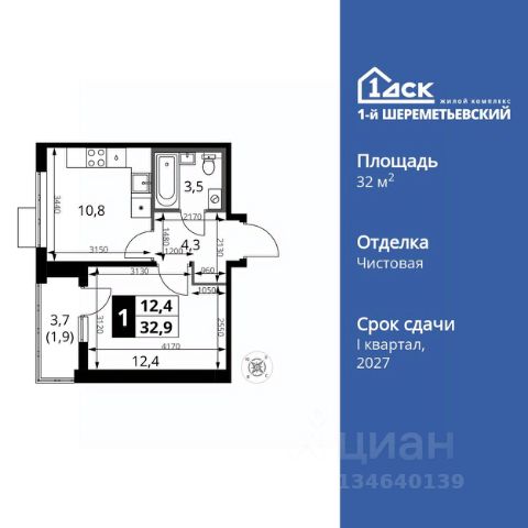 Продаётся 1-комн. квартира площадью 34,6 кв.м на 12 этаже 13 этажного дома (Корпус 5.3, Секция 4) проекта ПИК Зелёный парк. Светлый просторный подъезд на уровне земли, функциональная планировка, большие окна, c отделкой. Большой квартал с оригинальной архитектурой в обжитом районе Зеленограда. От него до станции МЦД-3 "Зеленоград-Крюково" — 20 минут пешком, до Кутузовского шоссе можно доехать на машине за 3 минуты, а до Пятницкого шоссе — за 5 минут. Характер "Зелёного парка" отражён в архитектуре. Квартал состоит из уютных разноэтажных блоков с оригинальными акцентами. Цветовая палитра проекта спокойная и сдержанная: оттенки белого и коричневого сочетаются с пастельным розовым и мятным. В проекте запланированы также два детских сада, две школы и паркинг. На первых этажах откроются магазины, кафе и другие сервисы — чтобы купить кофе и свежий хлеб к завтраку, можно будет просто спуститься на лифте. В уютных дворах-парках появятся места для отдыха, детские площадки, кофейни и зоны отдыха. Рядом — Зеленоградский лес, Парк Победы и Михайловский пруд, где можно гулять и заниматься спортом. У жителей "Зелёного парка" будет возможность получить московскую прописку. Для любителей спорта в 10 минутах пешком от квартала — велодром с BMX-трассой, физкультурно-оздоровительный комплекс Горизонт, а также лыжероллерная трасса длиной около 3 км. Артикул 1031262 (Застройщик АО "СПЕЦИАЛИЗИРОВАННЫЙ ЗАСТРОЙЩИК "ЗЕЛЕНОГРАДСКИЙ")