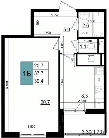Продается 1-комн. квартира площадью 40 кв.м на 12 этаже 19 этажного дома в ЖК "Союзный" от федерального девелопера ГК "Вектор".