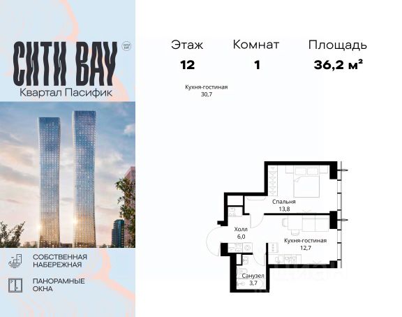 Прямая продажа от застройщика. Продаётся 1-комнатная квартира общей площадью 40.98 м² с предчистовой отделкой в ЖК Сити Бэй, квартале Норс, на 12-м этаже 27 этажного дома. Концепция жилого комплекса Сити Бэй - настоящий город в городе с отлично развитой инфраструктурой и собственной благоустроенной набережной. На территории жилого комплекса расположено пять кварталов - Атлантик, Пасифик, Индиан, Норс, Клиф. Жилой квартал Сити Бэй отличается оригинальной концепцией и выделяется среди других проектов такими характеристиками как: - Архитектура, - Виды из окон, - Природное окружение, вызывая гордость у жителей и восхищение у прохожих. Вся жизнь района Покровское-Стрешнево строится вокруг водных объектов: - Пойма реки Сходни с уникальной экосистемой, - Речка Химка и Химкинское водохранилище, - Москва-река, - Канал имени Москвы. Кругом вода, и местные с удовольствием этим пользуются. А сразу за рекой - центр водного спорта в Строгино с вейк-парком и яхт-Клубами. Помимо воды, здесь очень много зелени: - Рядом Сходненский ковш памятник природы, естественный амфитеатр глубиной 40 метров; - Парк при усадьбе Братцево с фруктовым садом; - Дубовая роща "Маяк", - Алешкинский лес; - Лесопарк Покровское-Стрешнево с пляжами и бобрами. Главные транспортные артерии района: - Волоколамское шоссе, - Таганско-Краснопресненская линия метро и МЦД-2. Всего за 20 минут можно добраться до центра на машине или метро, а МЦД связывает ЖК Сити Бэй с северными, восточными и юго-восточными районами. Компания MR предлагает своим клиентам специальные условия приобретения квартир в рамках программ ипотечного кредитования от банков-партнеров.